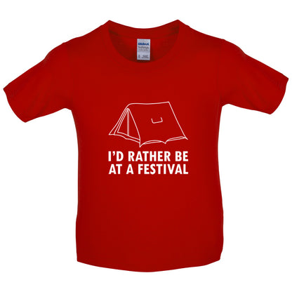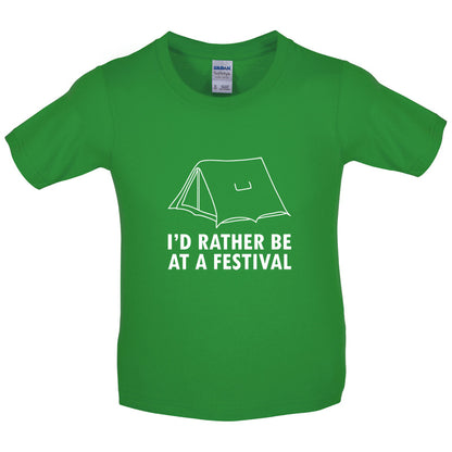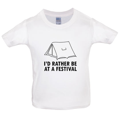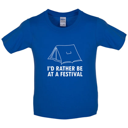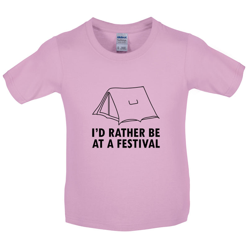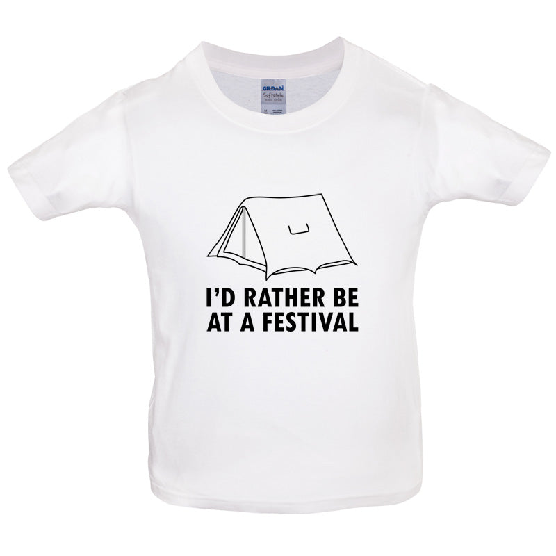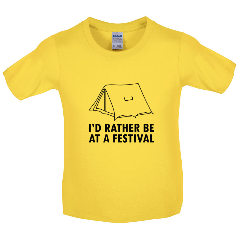 Kids T-shirt: Our Kid's Unisex style I'd Rather Be At A Festival T-shirt is printed on our 150 GSM ringspun cotton garment and is available on 8 different colours.