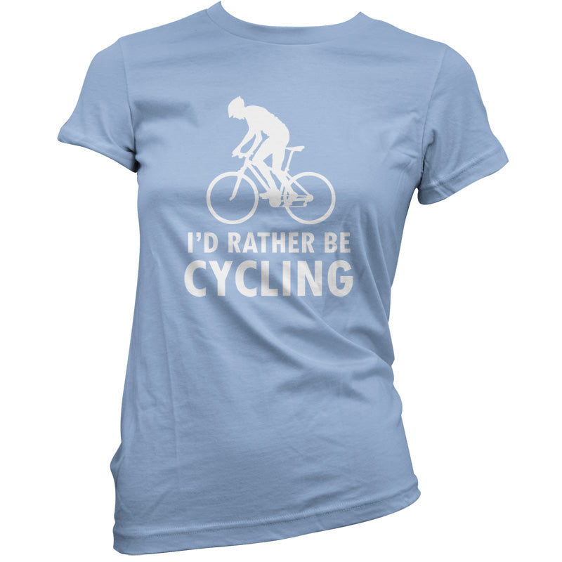 Women's Slim fit T-shirt, our ladies I'd Rather Be Cycling t-shirt is printed on our popular 150 GSM ring spun womens garment. Available in 11 colours and from Size Small to XXL.