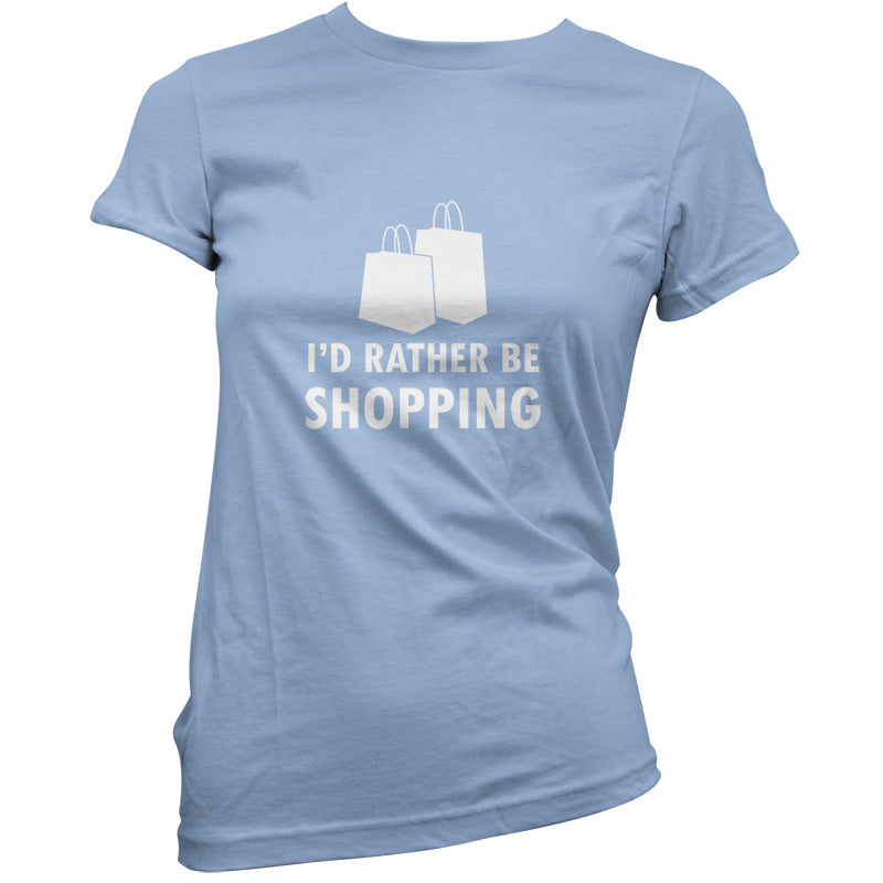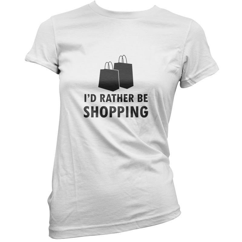Women's Slim fit T-shirt, our ladies I'd Rather Be Shopping t-shirt is printed on our popular 150 GSM ring spun womens garment. Available in 11 colours and from Size Small to XXL.