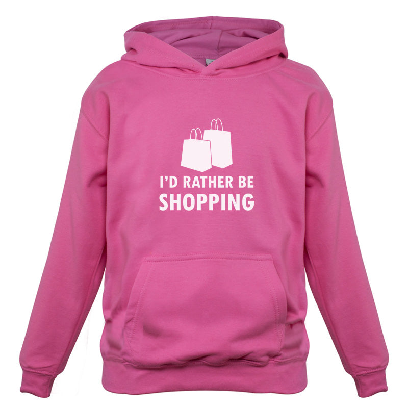Unisex Hoodie, Our unisex style I'd Rather Be Shopping Hooded top is printed on our 280 GSM kangaroo pocket garment and is Available in 9 Colours and with sizes Small to XXL.