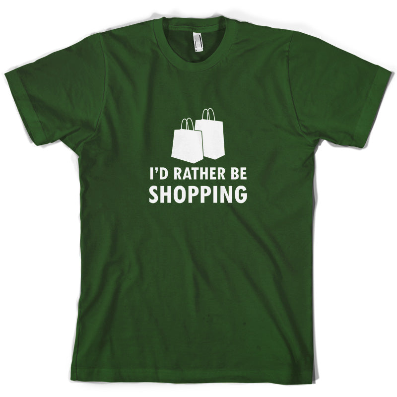 Mens Unisex T-Shirt, our men's I'd Rather Be Shopping t shirt is printed onto our premium 190 GSM one piece crew neck t-shirt. Available in 10 Colours and from Size Small to XXL.