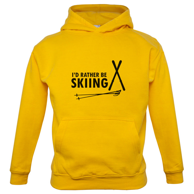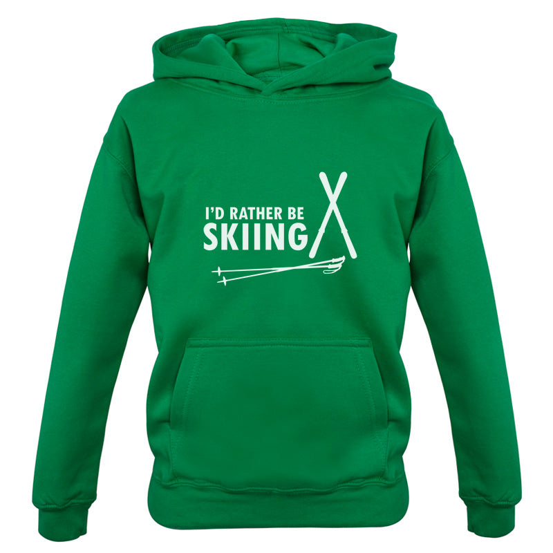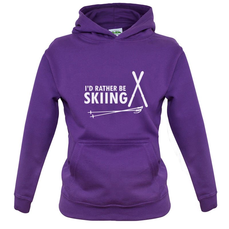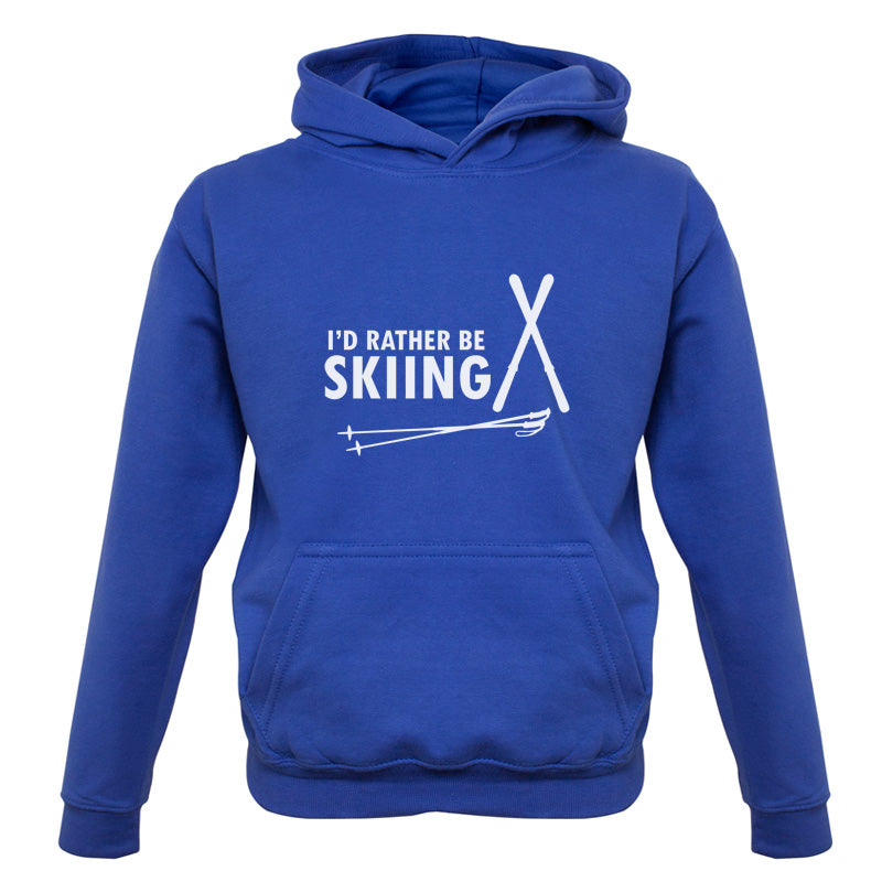 Kids Hoodie: Our kids unisex style I'd Rather Be Skiing Hoodie is printed on our 300 GSM kangaroo pocket hooded top and is available on 7 different Colours.