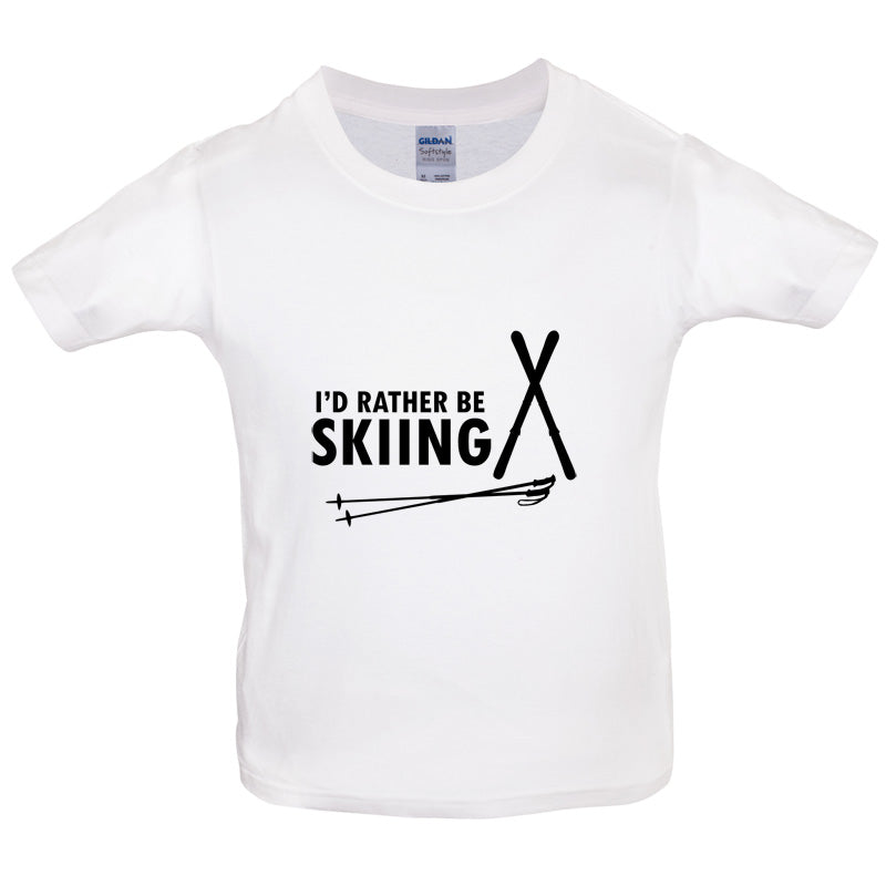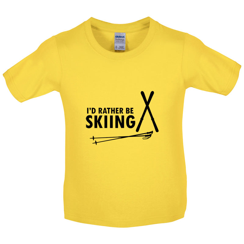 Kids T-shirt: Our Kid's Unisex style I'd Rather Be Skiing T-shirt is printed on our 150 GSM ringspun cotton garment and is available on 8 different colours.