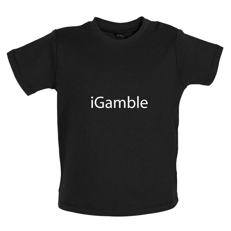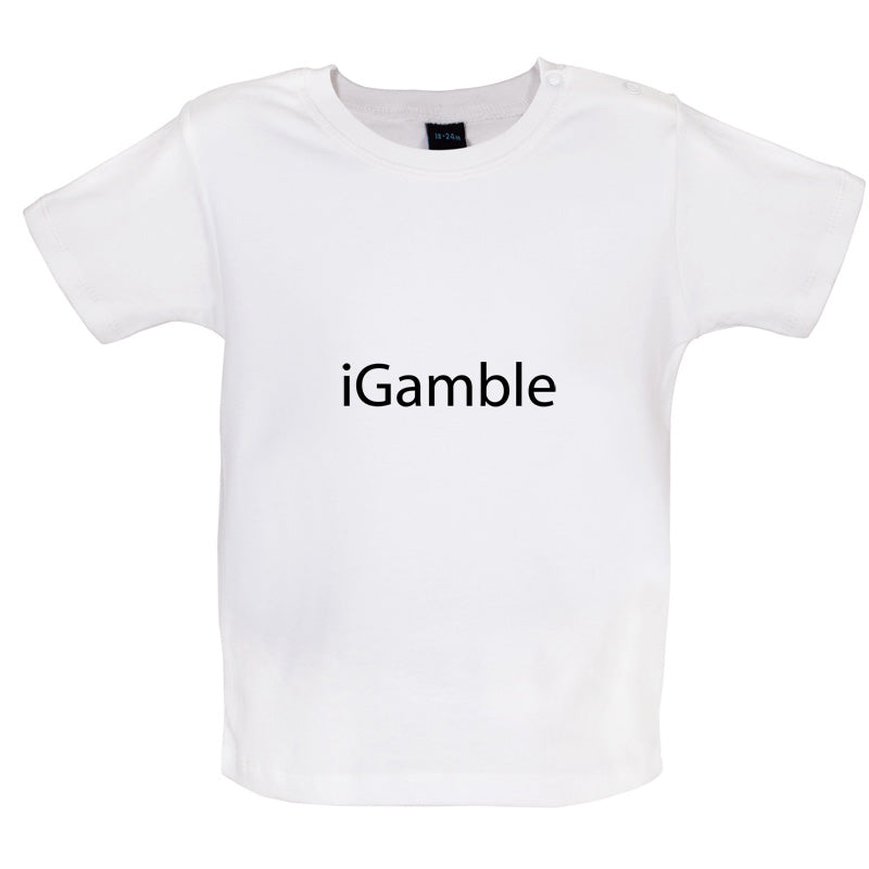 Baby/Toddler T-shirt: Our Baby Unisex style iGamble T-shirt is printed on our high quality 200 gsm ringspun cotton garment which features shoulder poppers to ease getting your little one dressed. Our Baby T-shirts are available in a choice of Eight colours.