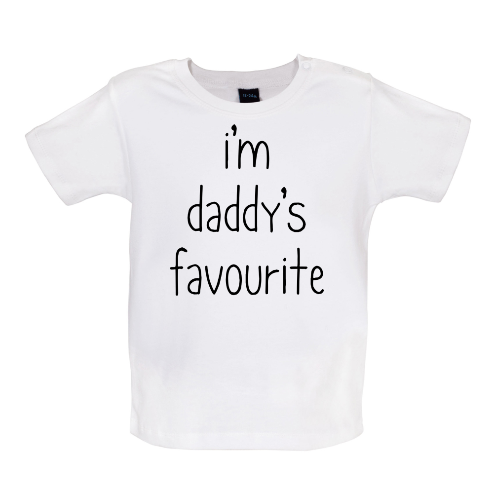 Baby/Toddler T-shirt: Our Baby Unisex style I'm Daddy's Favourite T-shirt is printed on our high quality 200 gsm ringspun cotton garment which features shoulder poppers to ease getting your little one dressed. Our Baby T-shirts are available in a choice of Eight colours.