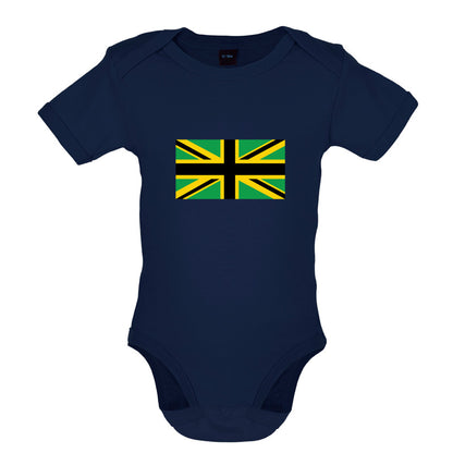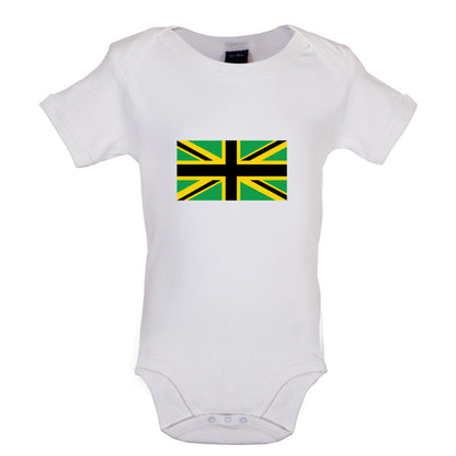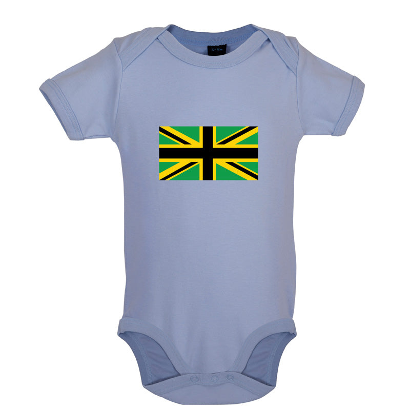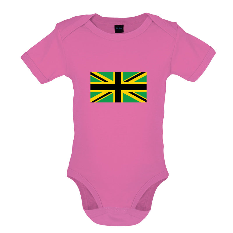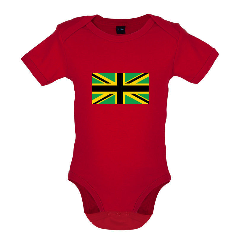 Babygrow/Bodysuit: Our Baby unisex style Jamaican Union Jack Babygrow is printed on our 200 GSM short sleeve bodysuit and is available in a choice of 6 different Colours.