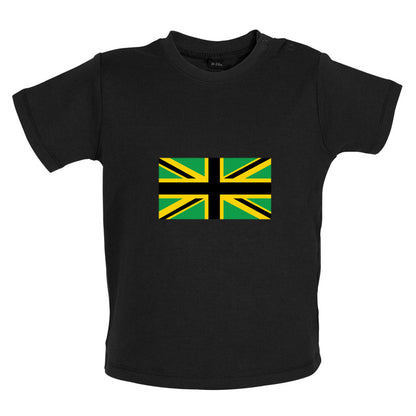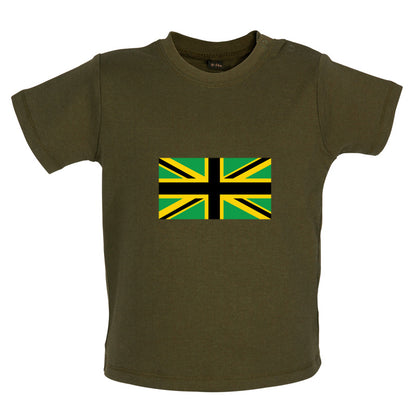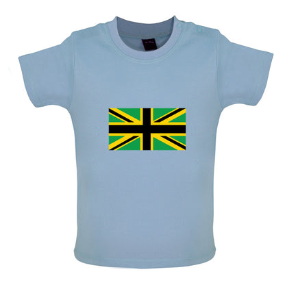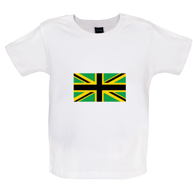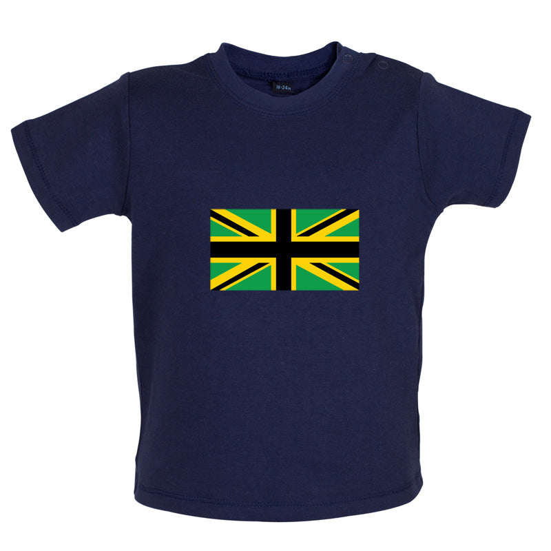 Baby/Toddler T-shirt: Our Baby Unisex style Jamaican Union Jack T-shirt is printed on our high quality 200 gsm ringspun cotton garment which features shoulder poppers to ease getting your little one dressed. Our Baby T-shirts are available in a choice of Eight colours.