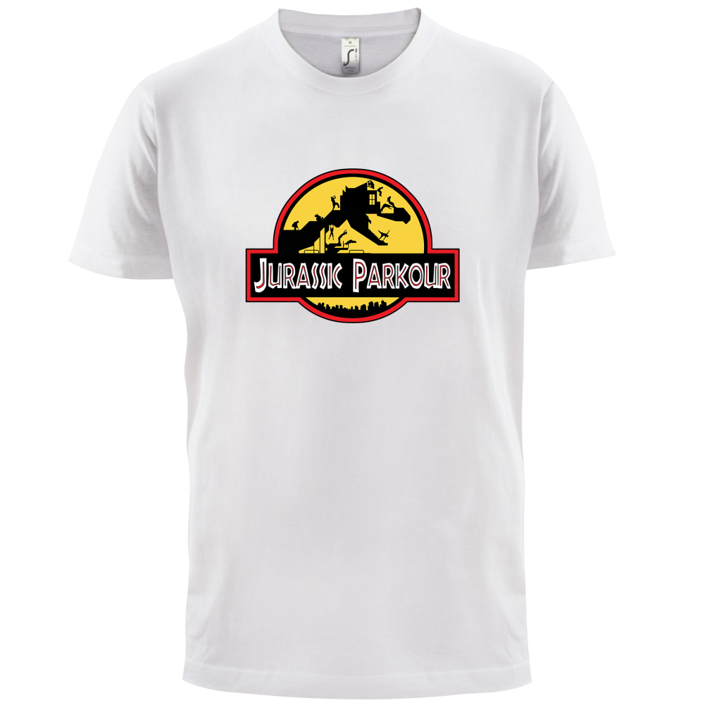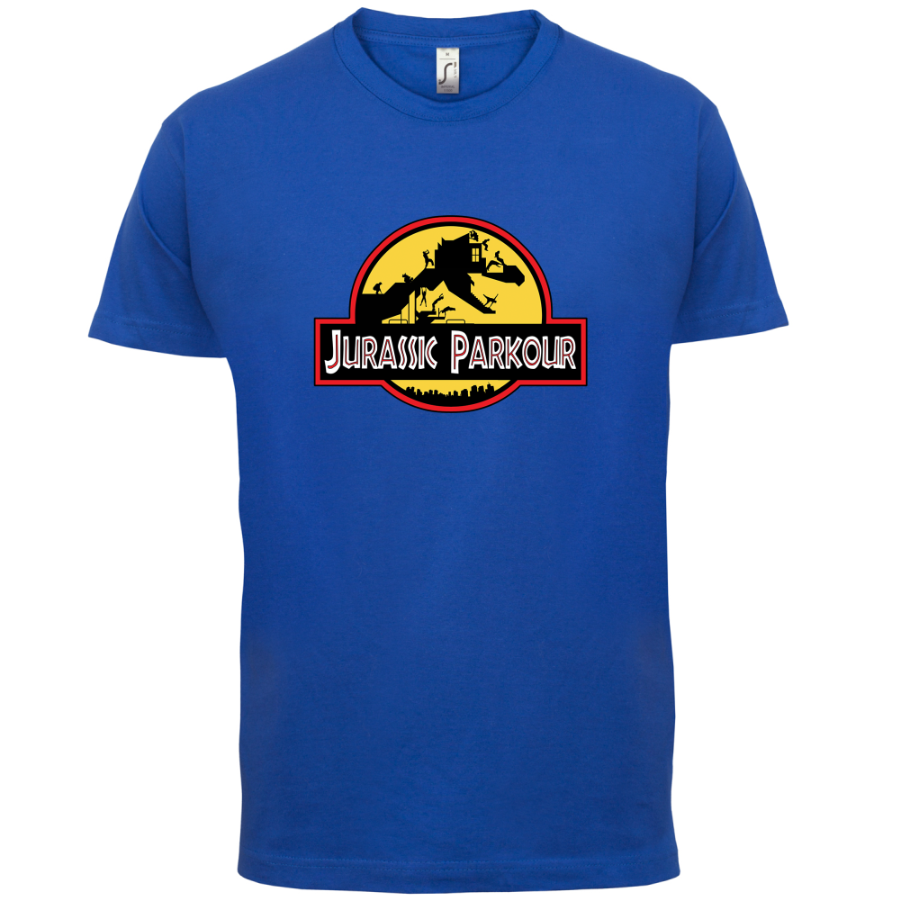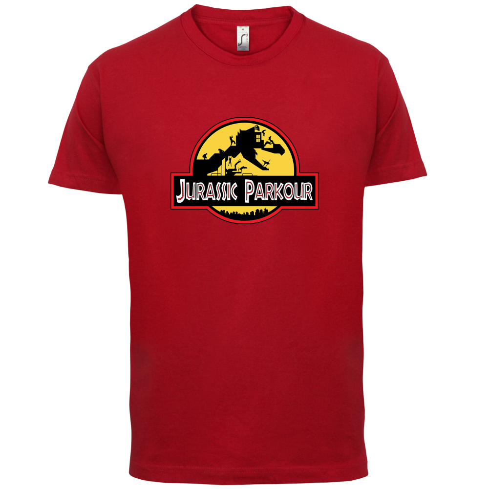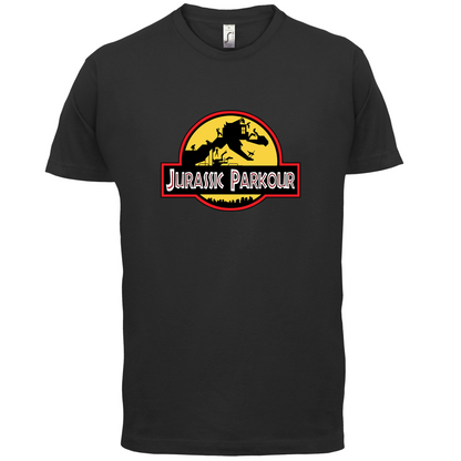 Mens Unisex T-Shirt, our men's Jurassic Parkour t shirt is printed onto our premium 190 GSM one piece crew neck t-shirt. Available in 10 Colours and from Size Small to XXL.