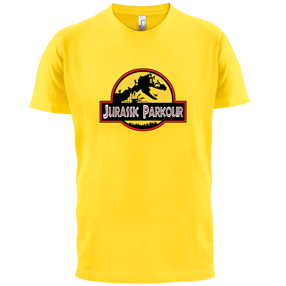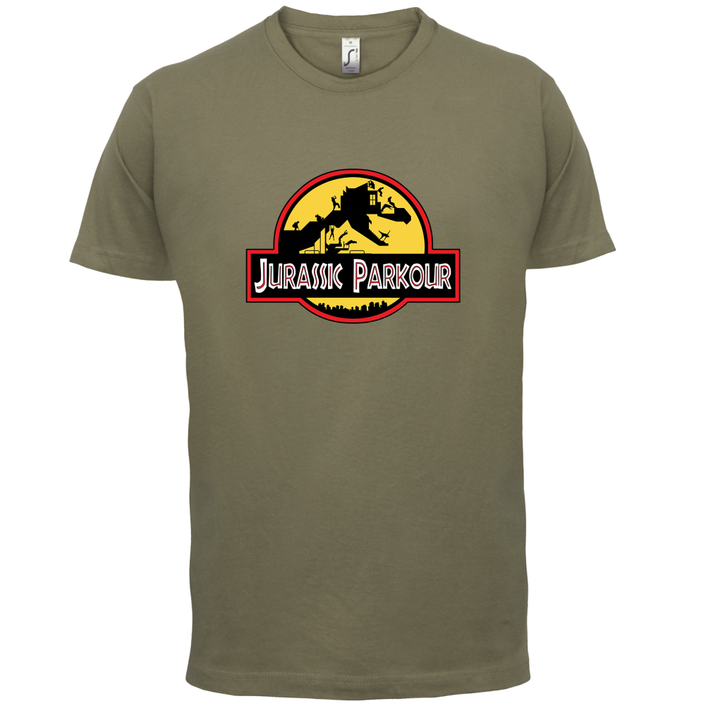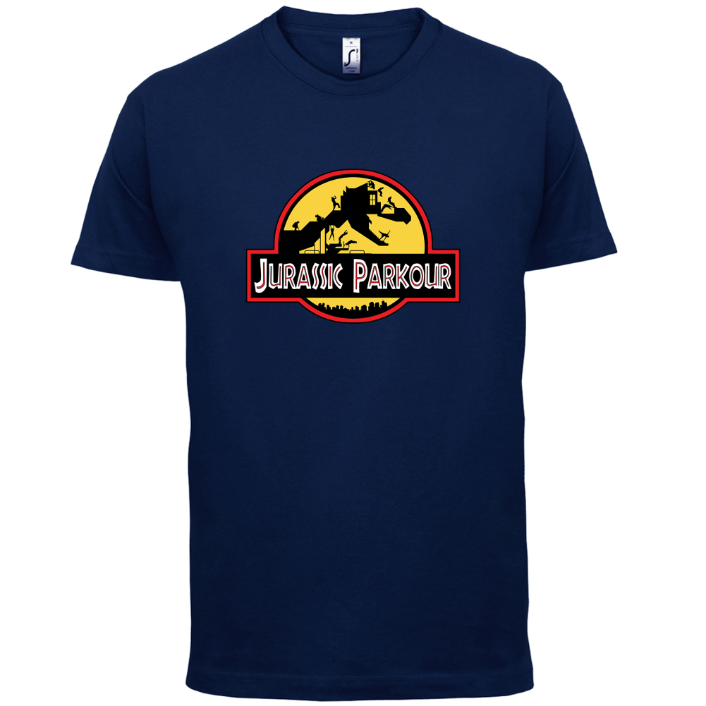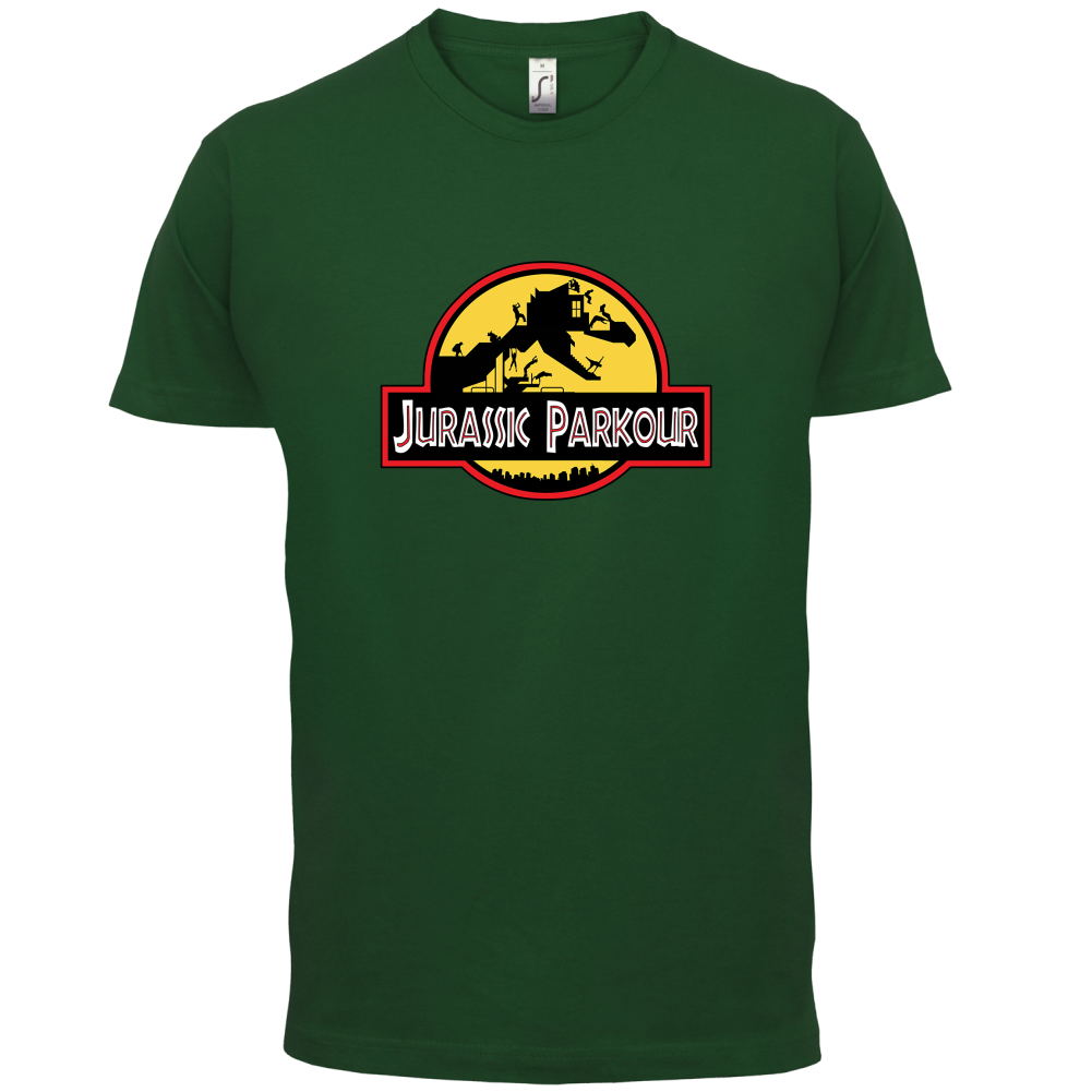 Mens Unisex T-Shirt, our men's Jurassic Parkour t shirt is printed onto our premium 190 GSM one piece crew neck t-shirt. Available in 10 Colours and from Size Small to XXL.