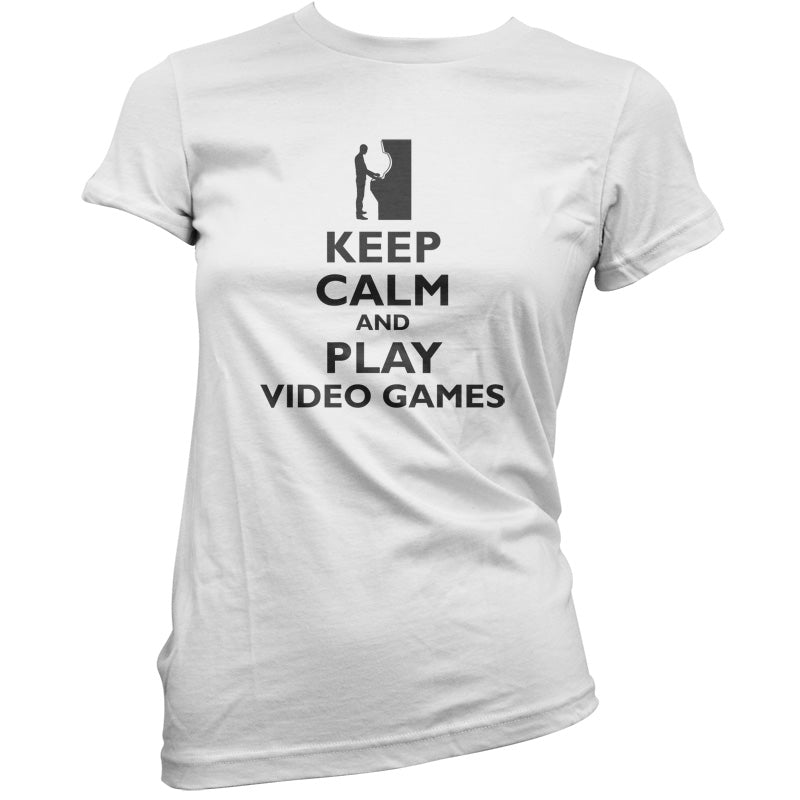 Women's Slim fit T-shirt, our ladies Keep Calm and Play Video Games t-shirt is printed on our popular 150 GSM ring spun womens garment. Available in 11 colours and from Size Small to XXL.