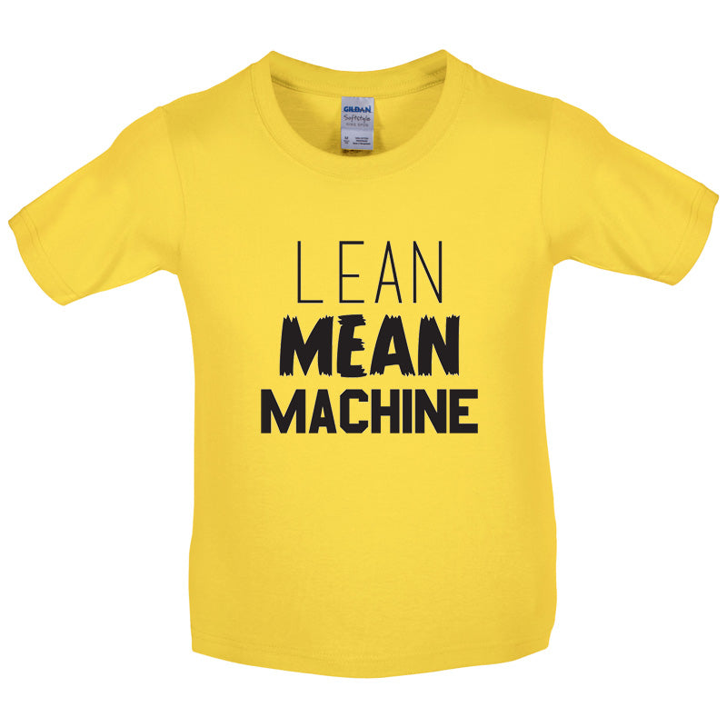 Kids T-shirt: Our Kid's Unisex style Lean Mean Machine T-shirt is printed on our 150 GSM ringspun cotton garment and is available on 8 different colours.