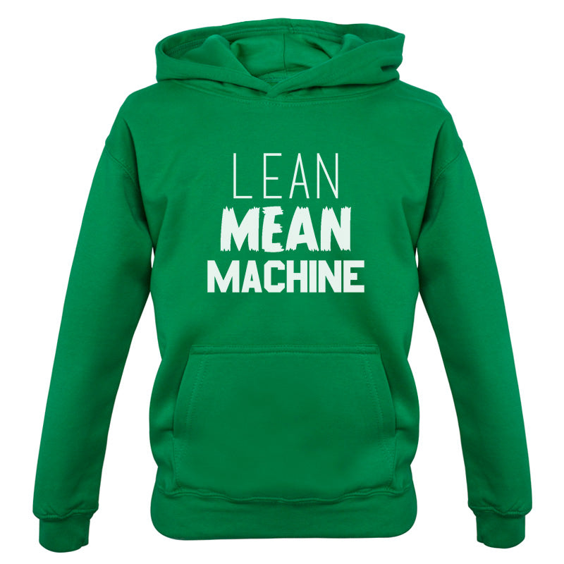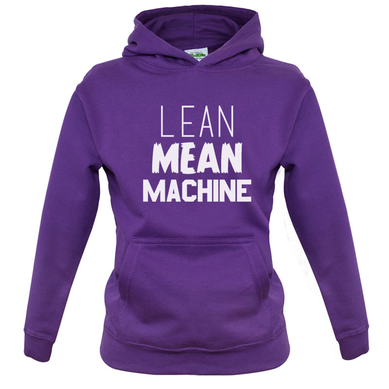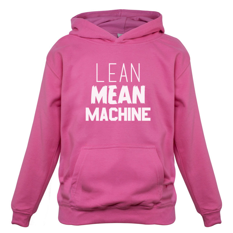 Kids Hoodie: Our kids unisex style Lean Mean Machine Hoodie is printed on our 300 GSM kangaroo pocket hooded top and is available on 7 different Colours.