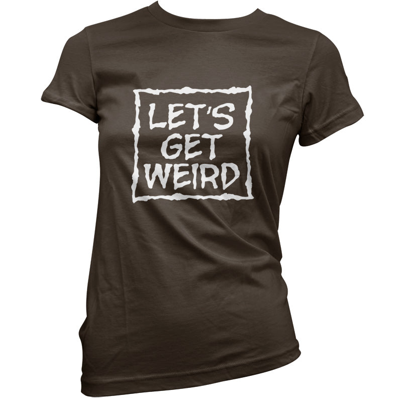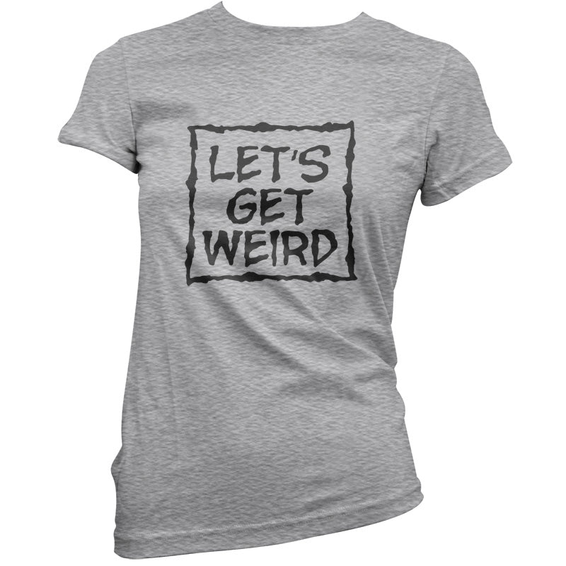 Women's Slim fit T-shirt, our ladies Lets Get Weird t-shirt is printed on our popular 150 GSM ring spun womens garment. Available in 11 colours and from Size Small to XXL.
