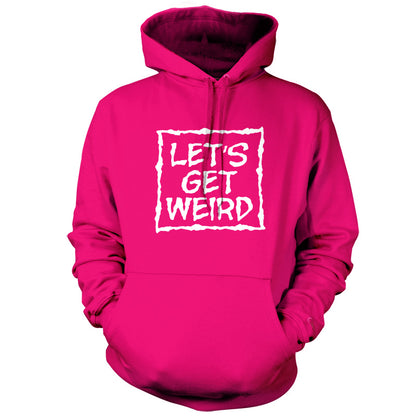 Unisex Hoodie, Our unisex style Lets Get Weird Hooded top is printed on our 280 GSM kangaroo pocket garment and is Available in 9 Colours and with sizes Small to XXL.