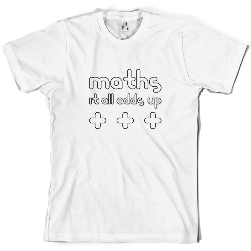 Mens Unisex T-Shirt, our men's Maths It All Adds Up t shirt is printed onto our premium 190 GSM one piece crew neck t-shirt. Available in 10 Colours and from Size Small to XXL.