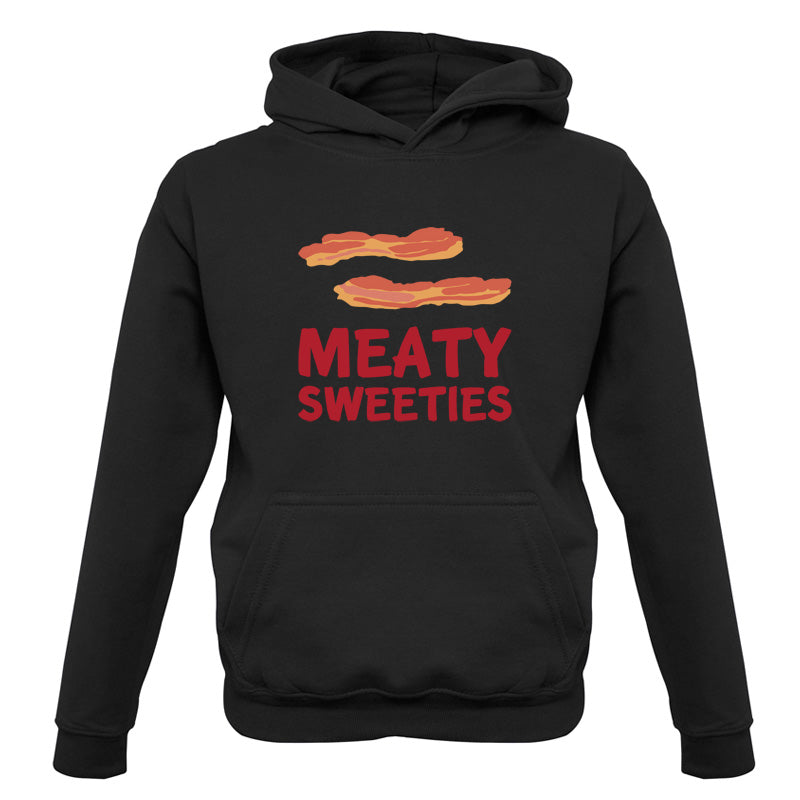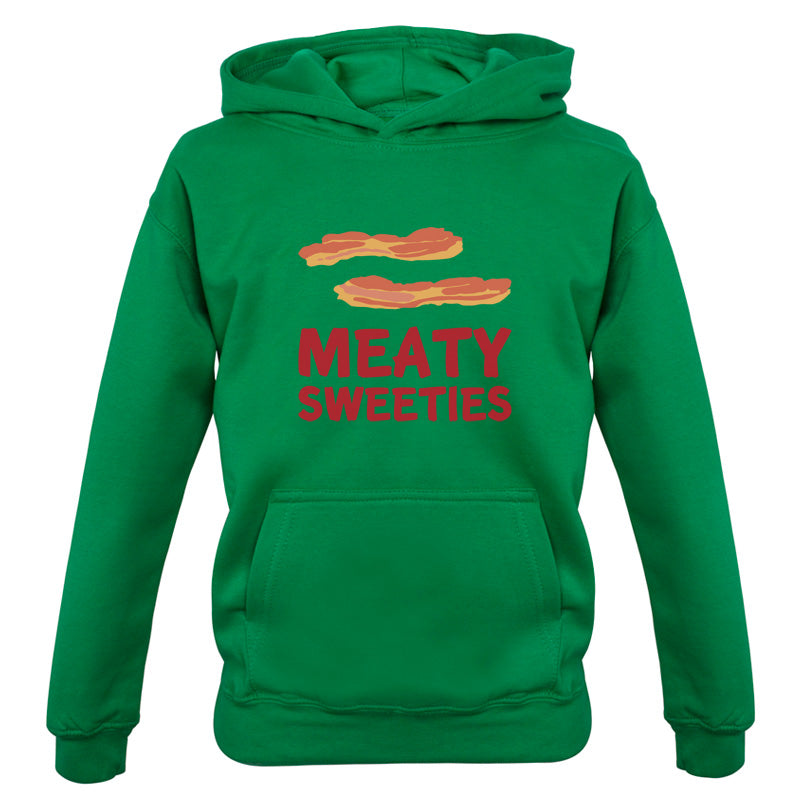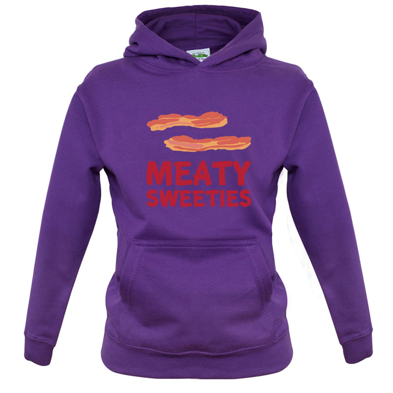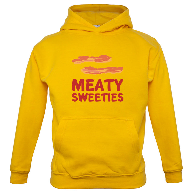 Kids Hoodie: Our kids unisex style Meaty Sweeties Hoodie is printed on our 300 GSM kangaroo pocket hooded top and is available on 7 different Colours.
