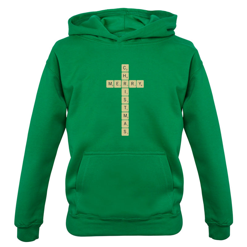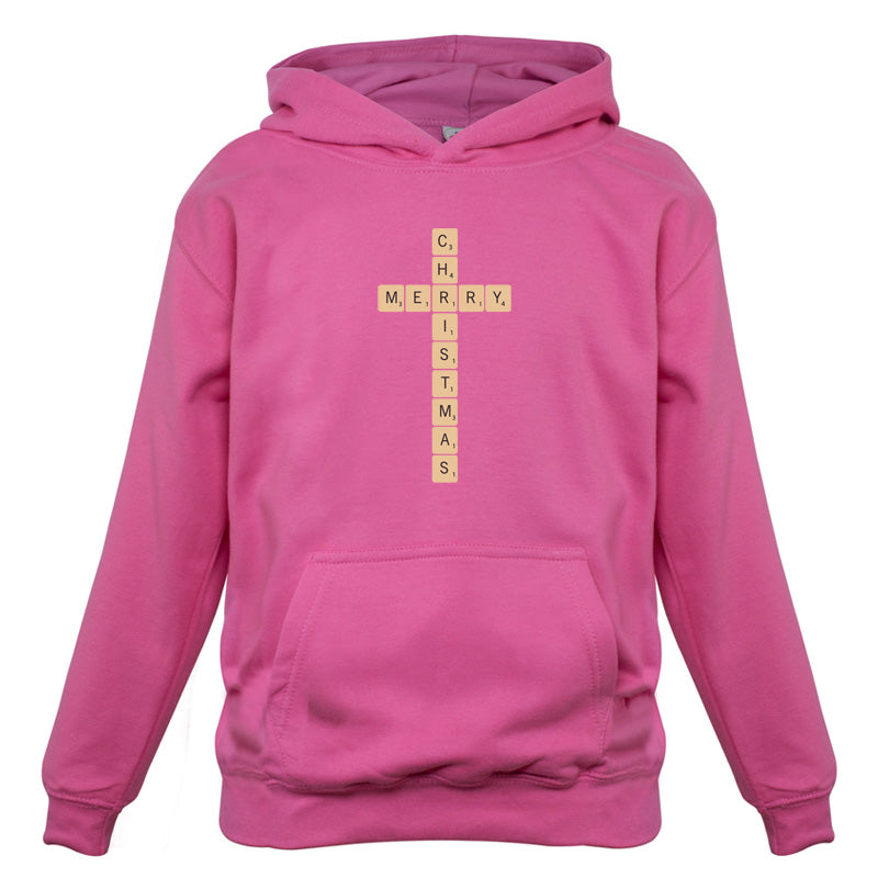 Kids Hoodie: Our kids unisex style Merry Christmas Letter Piece Hoodie is printed on our 300 GSM kangaroo pocket hooded top and is available on 7 different Colours.