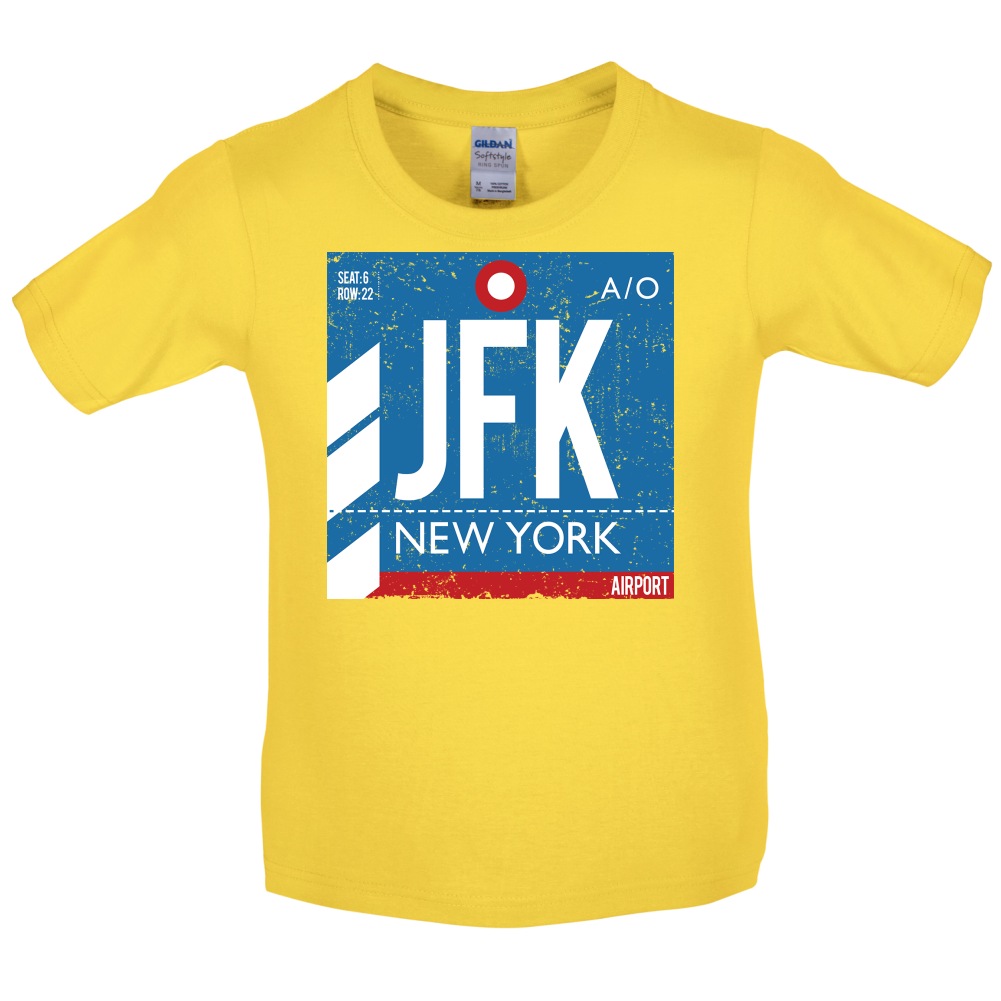 Kids T-shirt: Our Kid's Unisex style New York Airport T-shirt is printed on our 150 GSM ringspun cotton garment and is available on 8 different colours.