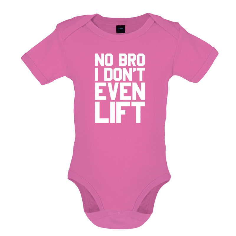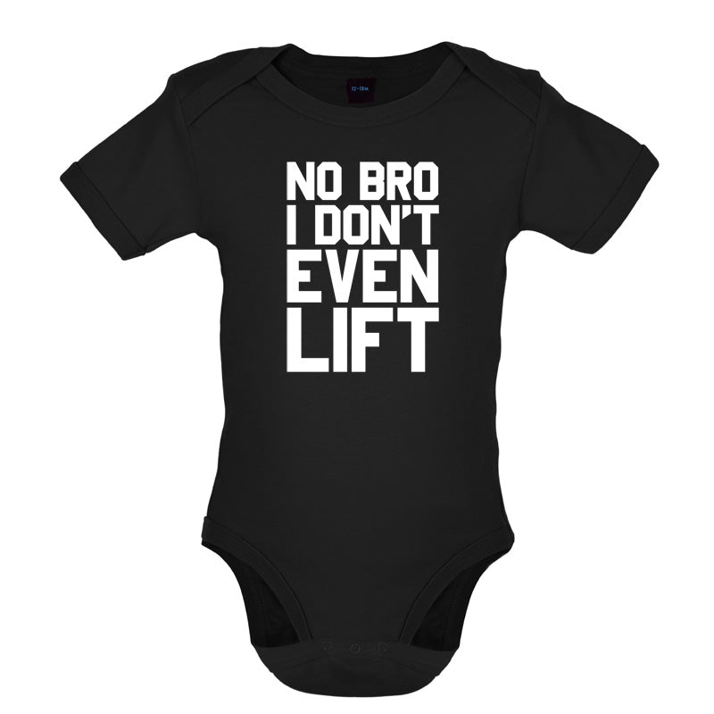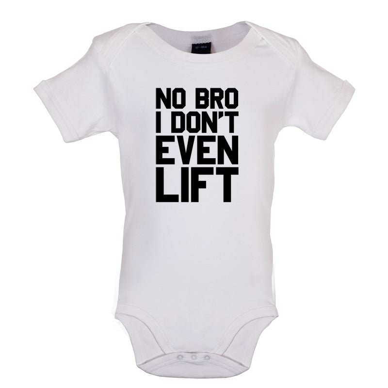 This No Bro I Dont Even Lift baby design is available in a choice of garments, use the menu on the right of this page to select your choice of the following: