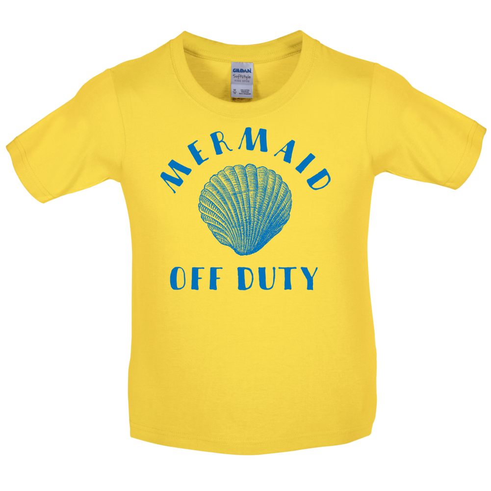 Kids T-shirt: Our Kid's Unisex style Off Duty Mermaid T-shirt is printed on our 150 GSM ringspun cotton garment and is available on 8 different colours.