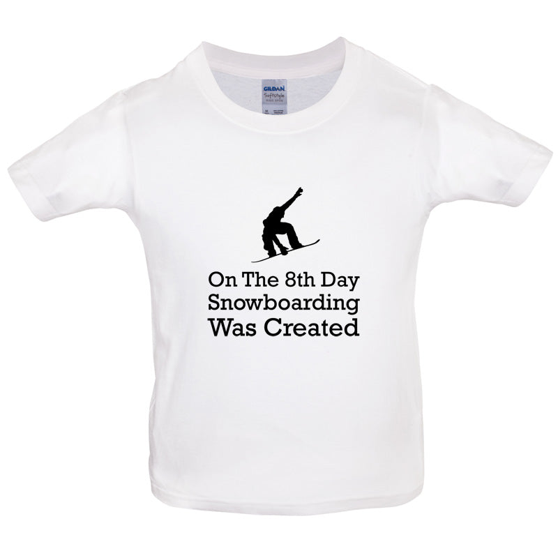 Kids T-shirt: Our Kid's Unisex style On The 8th Day Snowboarding Was Created T-shirt is printed on our 150 GSM ringspun cotton garment and is available on 8 different colours.