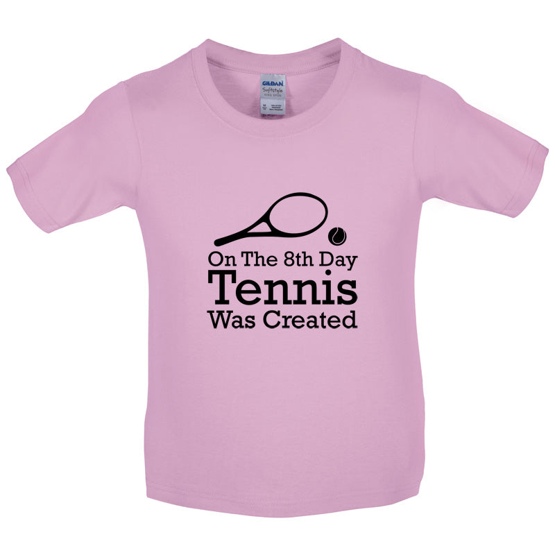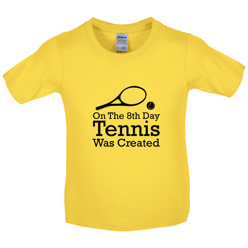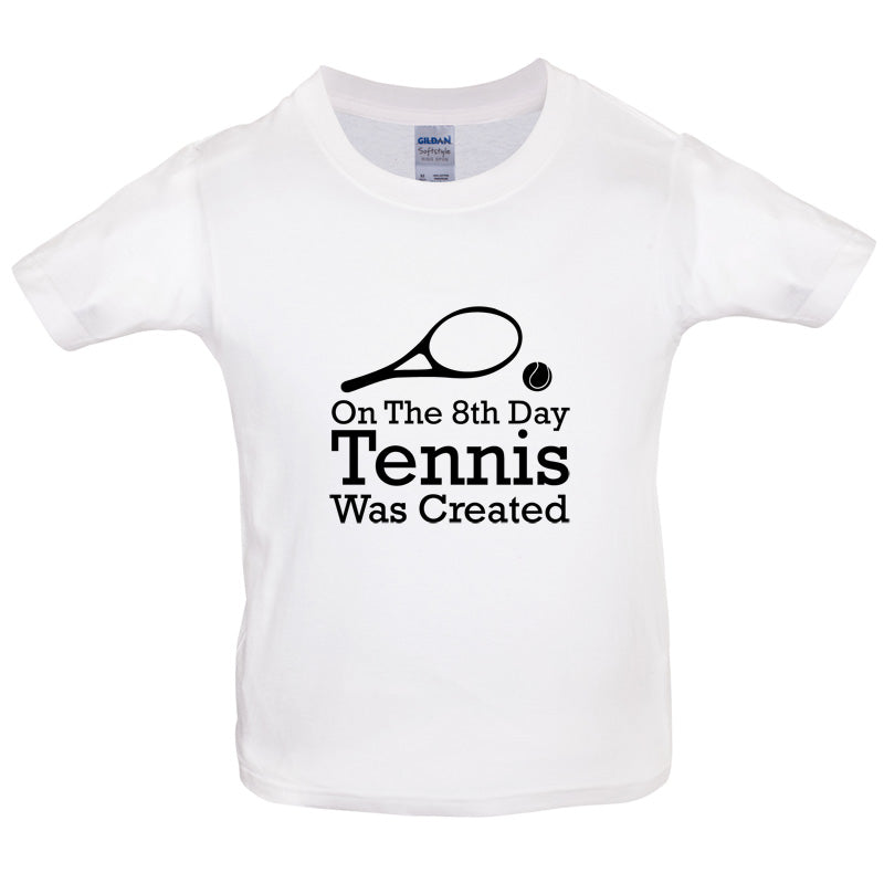 Kids T-shirt: Our Kid's Unisex style On The 8th Day Tennis Was Created T-shirt is printed on our 150 GSM ringspun cotton garment and is available on 8 different colours.