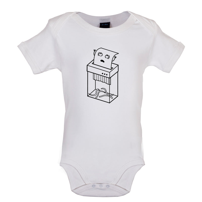 Babygrow/Bodysuit: Our Baby unisex style Paper Shredder Babygrow is printed on our 200 GSM short sleeve bodysuit and is available in a choice of 6 different Colours.