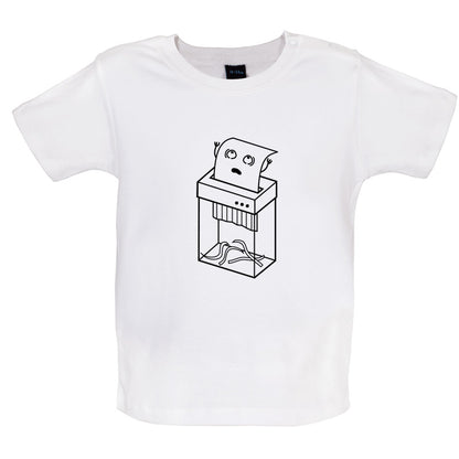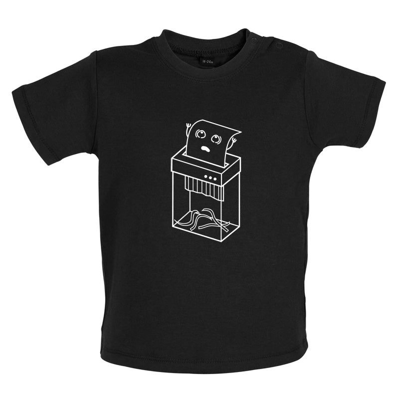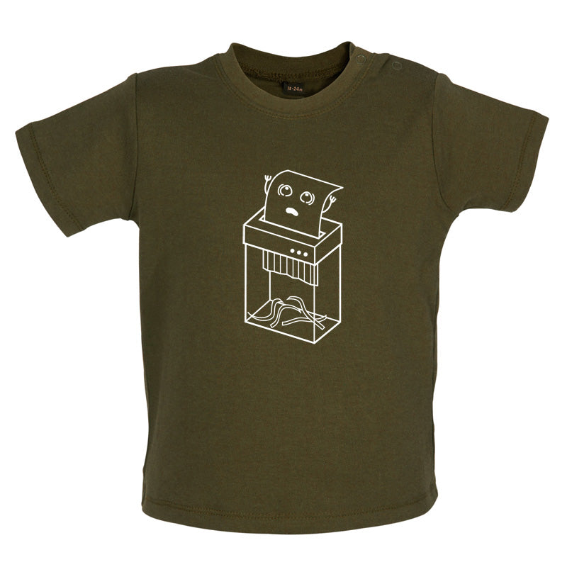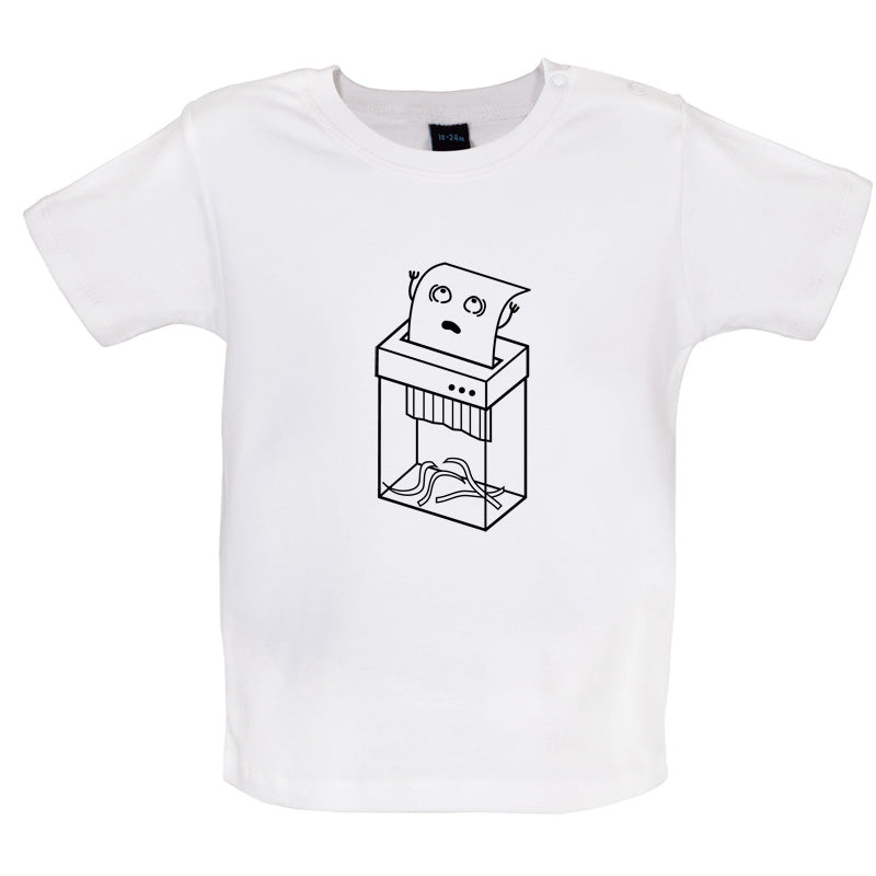 Baby/Toddler T-shirt: Our Baby Unisex style Paper Shredder T-shirt is printed on our high quality 200 gsm ringspun cotton garment which features shoulder poppers to ease getting your little one dressed. Our Baby T-shirts are available in a choice of Eight colours.