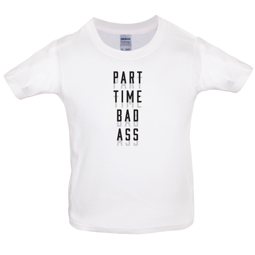 Kids T-shirt: Our Kid's Unisex style Part Time Bad Ass T-shirt is printed on our 150 GSM ringspun cotton garment and is available on 8 different colours.