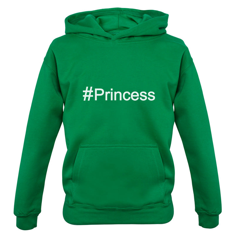 Kids Hoodie: Our kids unisex style #Princess (Hashtag) Hoodie is printed on our 300 GSM kangaroo pocket hooded top and is available on 7 different Colours.