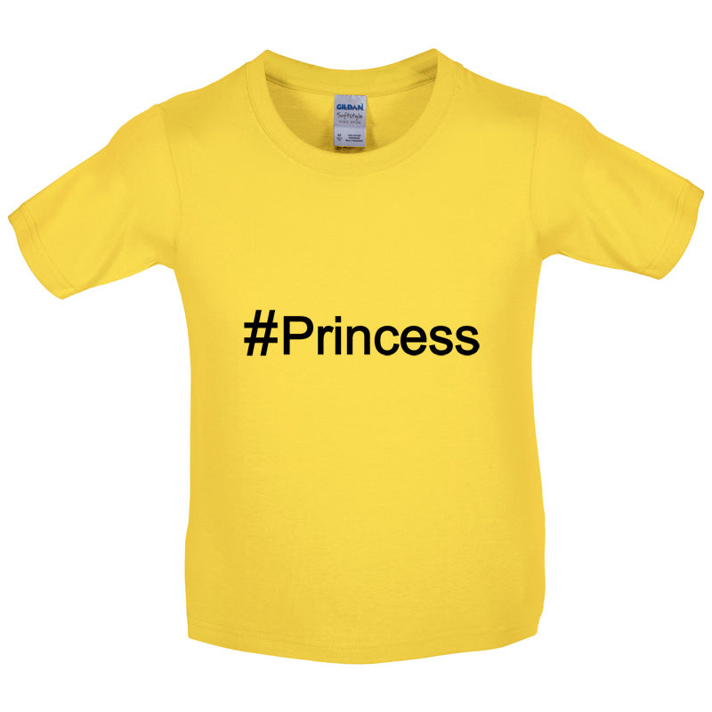 Kids T-shirt: Our Kid's Unisex style #Princess (Hashtag) T-shirt is printed on our 150 GSM ringspun cotton garment and is available on 8 different colours.