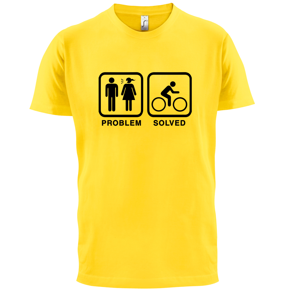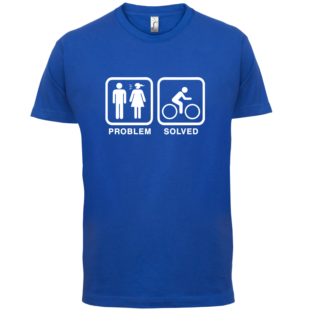Mens Unisex T-Shirt, our men's Problem Solved Cycling t shirt is printed onto our premium 190 GSM one piece crew neck t-shirt. Available in 10 Colours and from Size Small to XXL.
