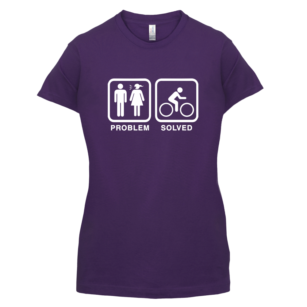 Women's Slim fit T-shirt, our ladies Problem Solved Cycling t-shirt is printed on our popular 150 GSM ring spun womens garment. Available in 11 colours and from Size Small to XXL.