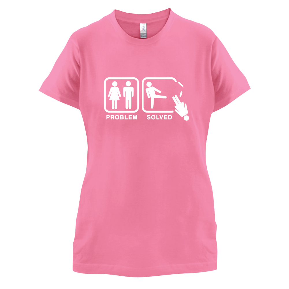 Women's Slim fit T-shirt, our ladies Problem Solved Man Kick t-shirt is printed on our popular 150 GSM ring spun womens garment. Available in 11 colours and from Size Small to XXL.