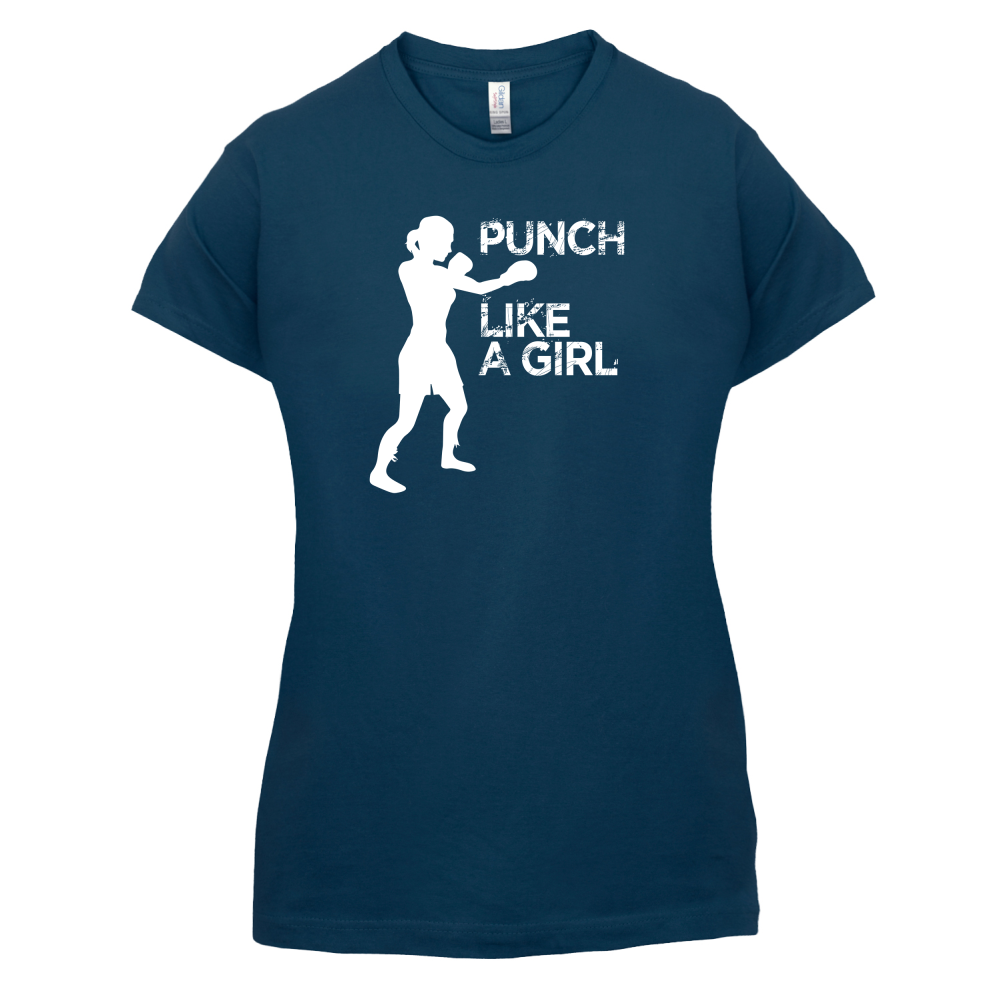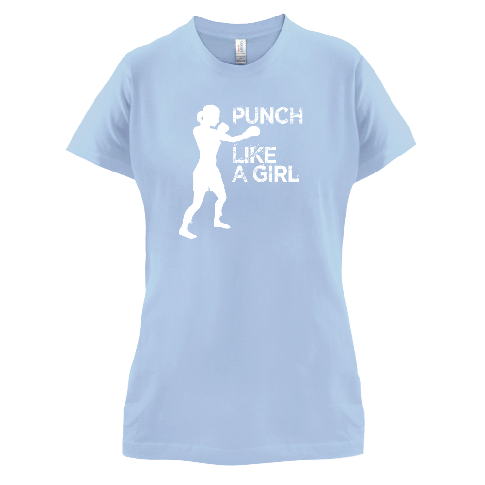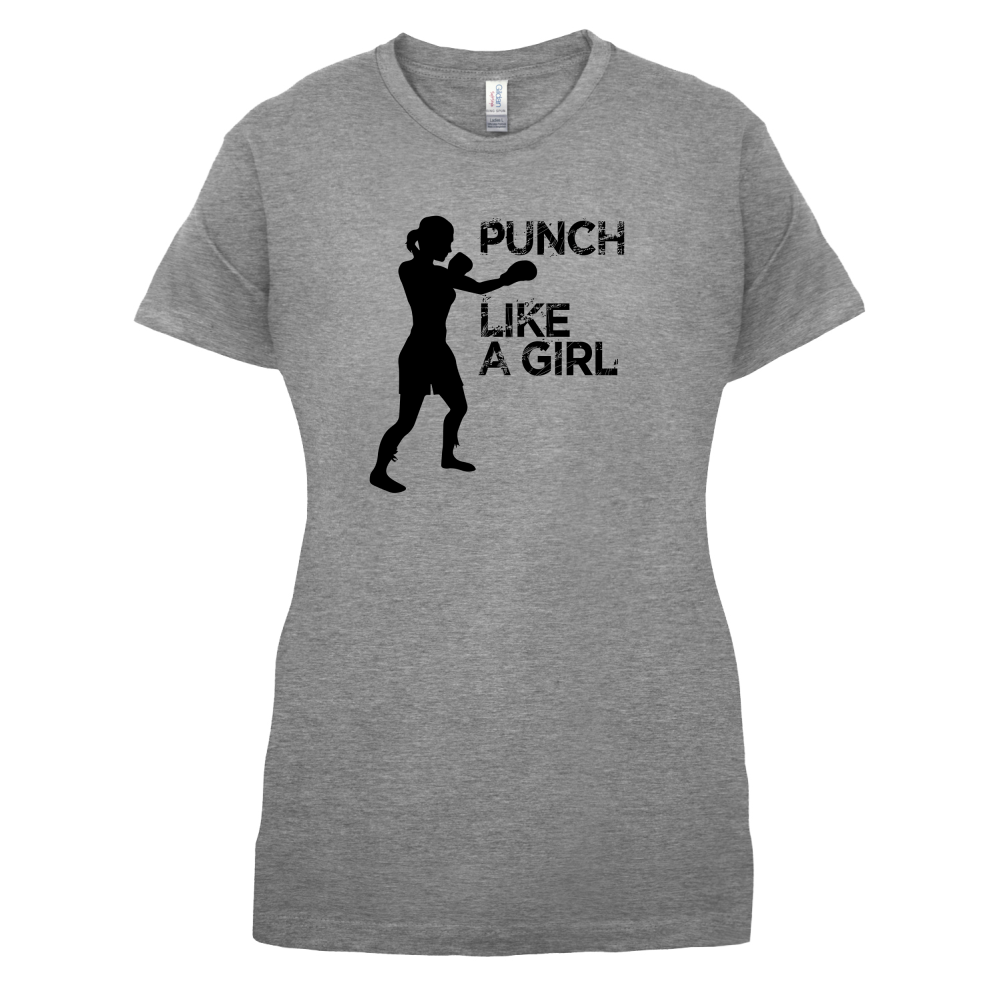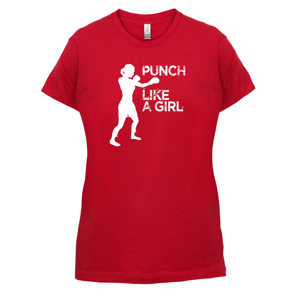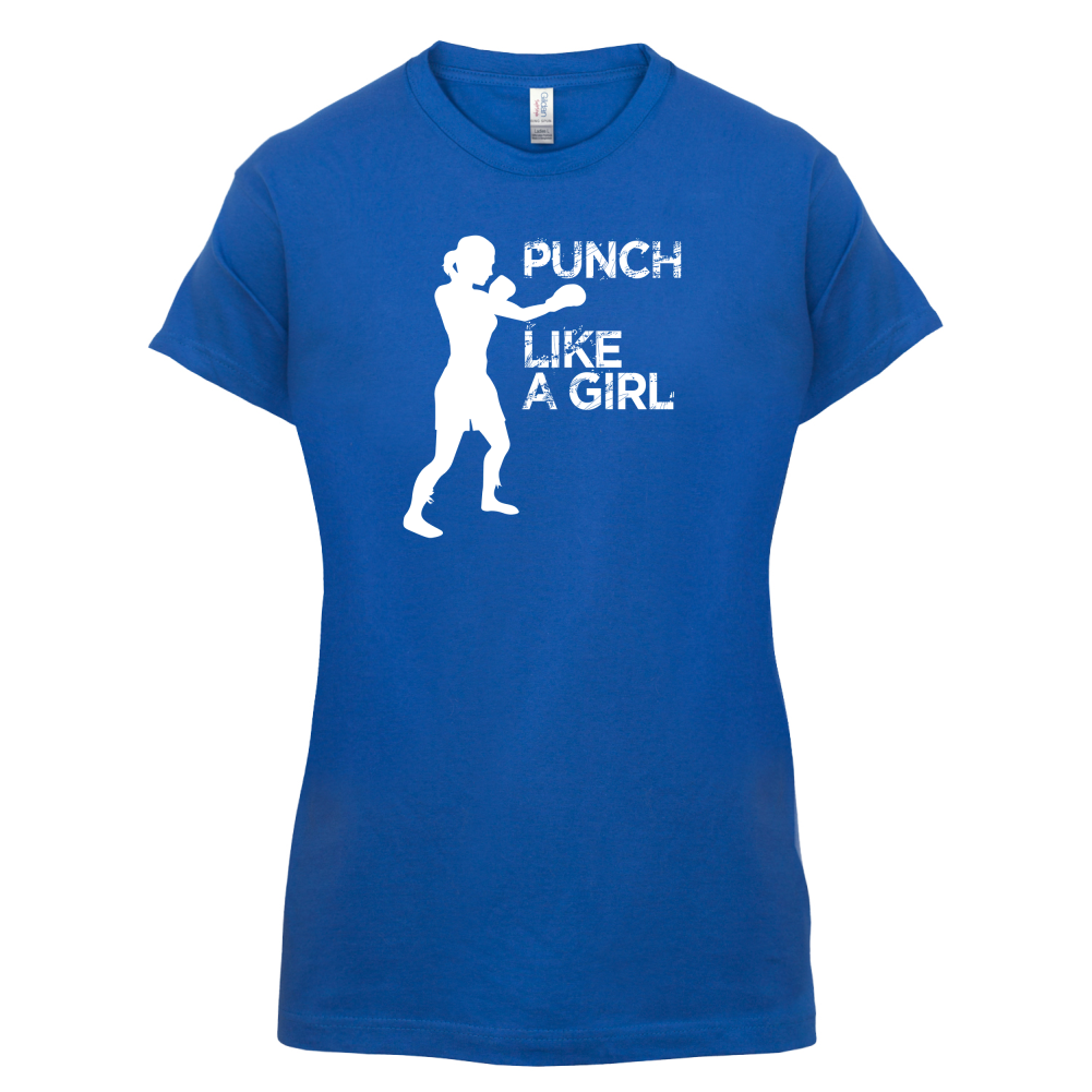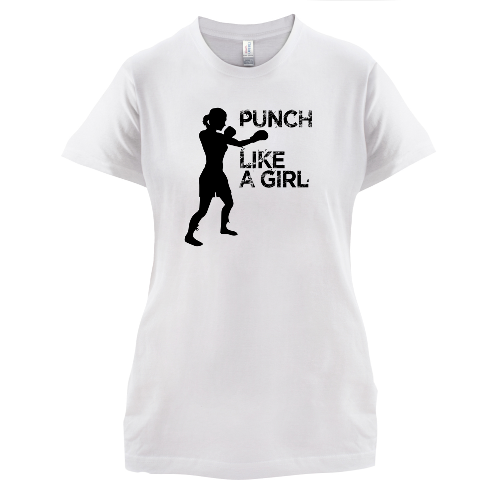 Women's Slim fit T-shirt, our ladies Punch Like A Girl t-shirt is printed on our popular 150 GSM ring spun womens garment. Available in 11 colours and from Size Small to XXL.