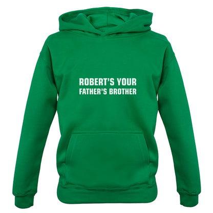 Kids Hoodie: Our kids unisex style Robert's Your Father's Brothers Hoodie is printed on our 300 GSM kangaroo pocket hooded top and is available on 7 different Colours.