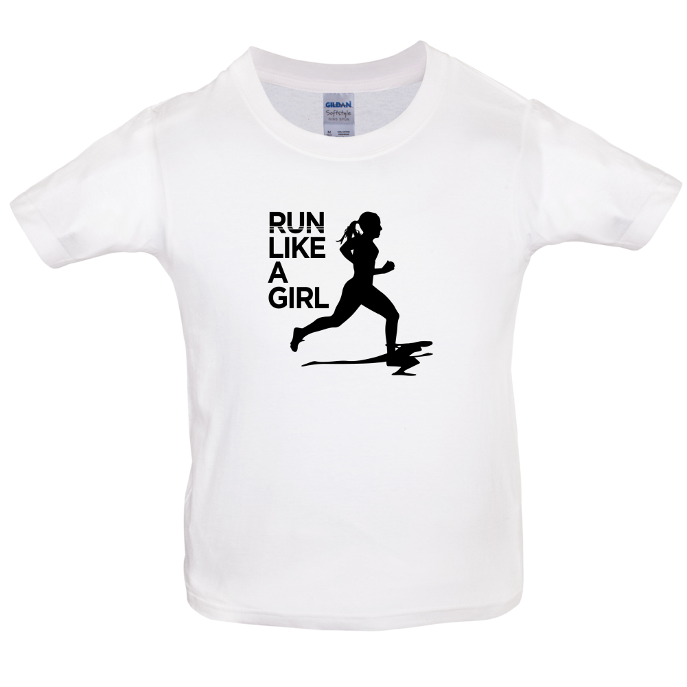 Kids T-shirt: Our Kid's Unisex style Run Like A Girl T-shirt is printed on our 150 GSM ringspun cotton garment and is available on 8 different colours.