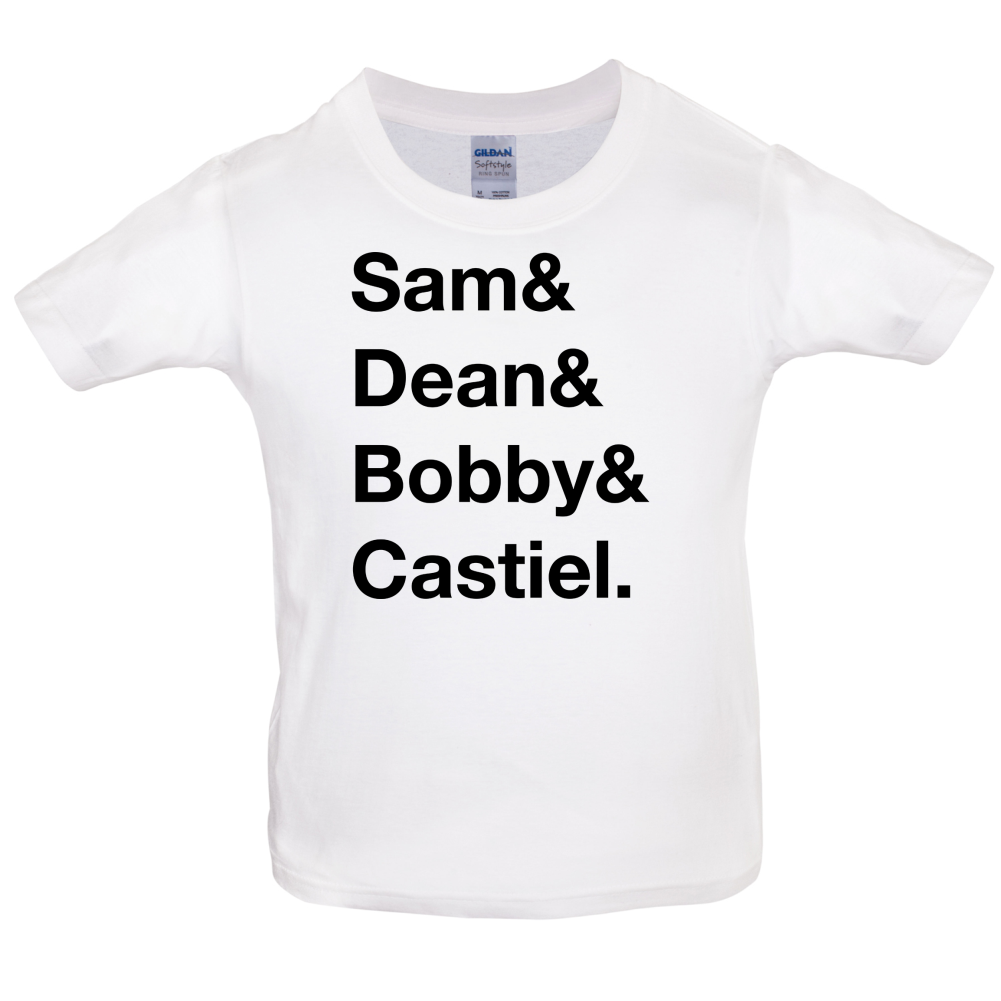 Kids T-shirt: Our Kid's Unisex style Sam & Dean & Bobby & Castiel T-shirt is printed on our 150 GSM ringspun cotton garment and is available on 8 different colours.