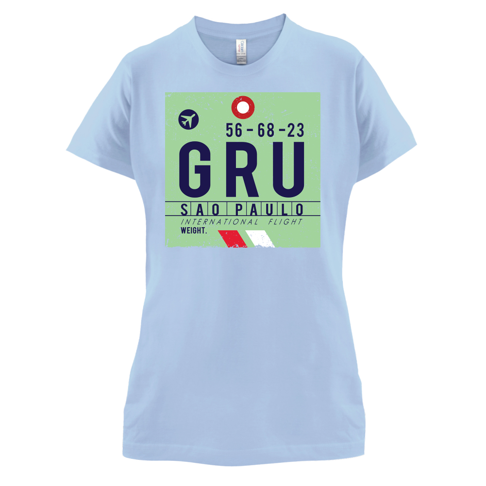 Women's Slim fit T-shirt, our ladies Sao Paulo Airport t-shirt is printed on our popular 150 GSM ring spun womens garment. Available in 11 colours and from Size Small to XXL.