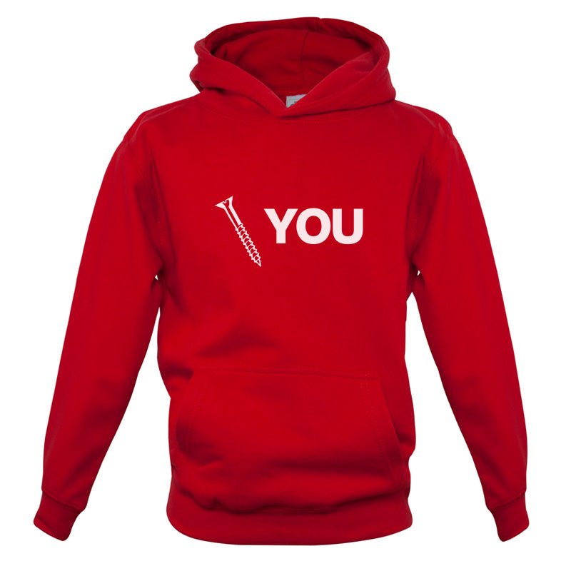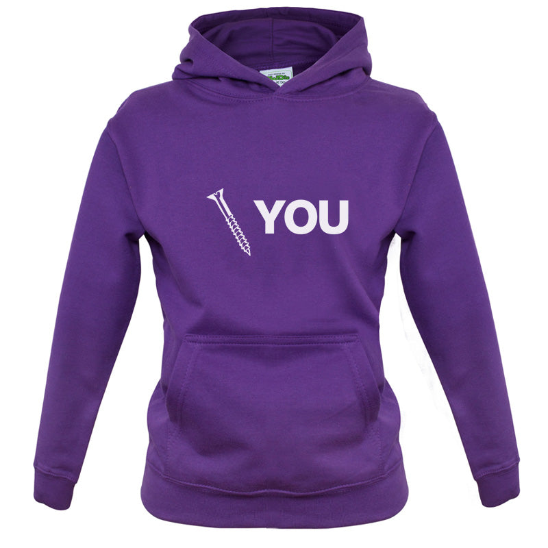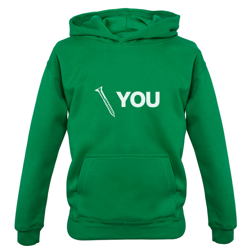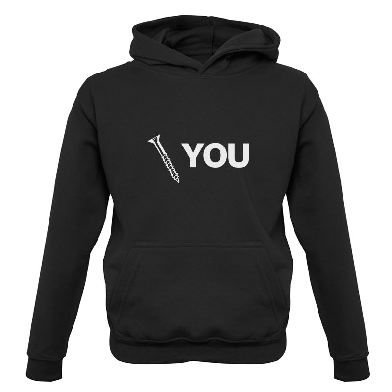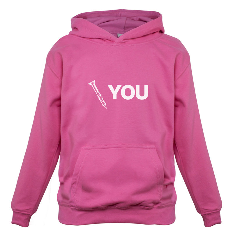 Kids Hoodie: Our kids unisex style Screw You Hoodie is printed on our 300 GSM kangaroo pocket hooded top and is available on 7 different Colours.