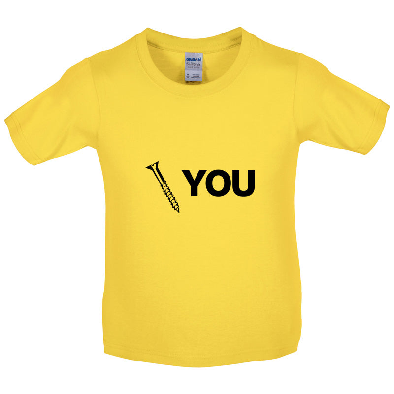 Kids T-shirt: Our Kid's Unisex style Screw You T-shirt is printed on our 150 GSM ringspun cotton garment and is available on 8 different colours.