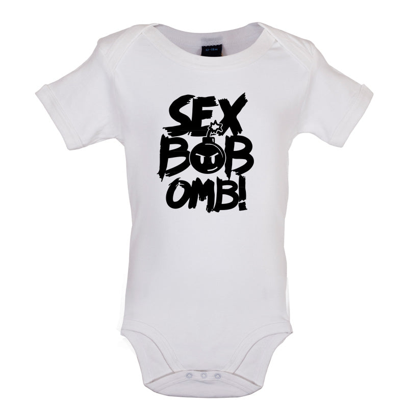 Babygrow/Bodysuit: Our Baby unisex style Sex Bob-omb Babygrow is printed on our 200 GSM short sleeve bodysuit and is available in a choice of 6 different Colours.