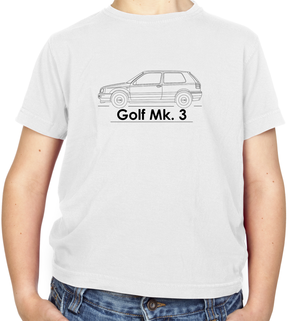 Kids T-shirt: Our Kid's Unisex style Side View Golf MK3 T-shirt is printed on our 150 GSM ringspun cotton garment and is available on 8 different colours.