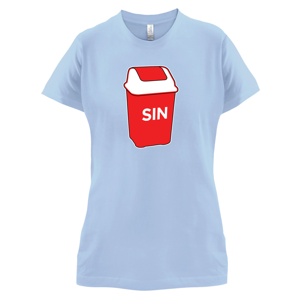 Women's Slim fit T-shirt, our ladies Sin Bin t-shirt is printed on our popular 150 GSM ring spun womens garment. Available in 11 colours and from Size Small to XXL.