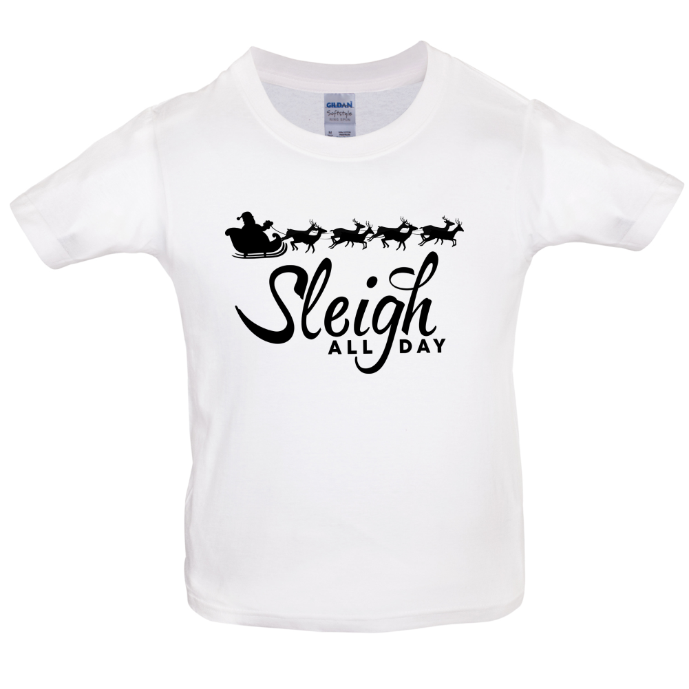 Kids T-shirt: Our Kid's Unisex style SleighAllDay T-shirt is printed on our 150 GSM ringspun cotton garment and is available on 8 different colours.