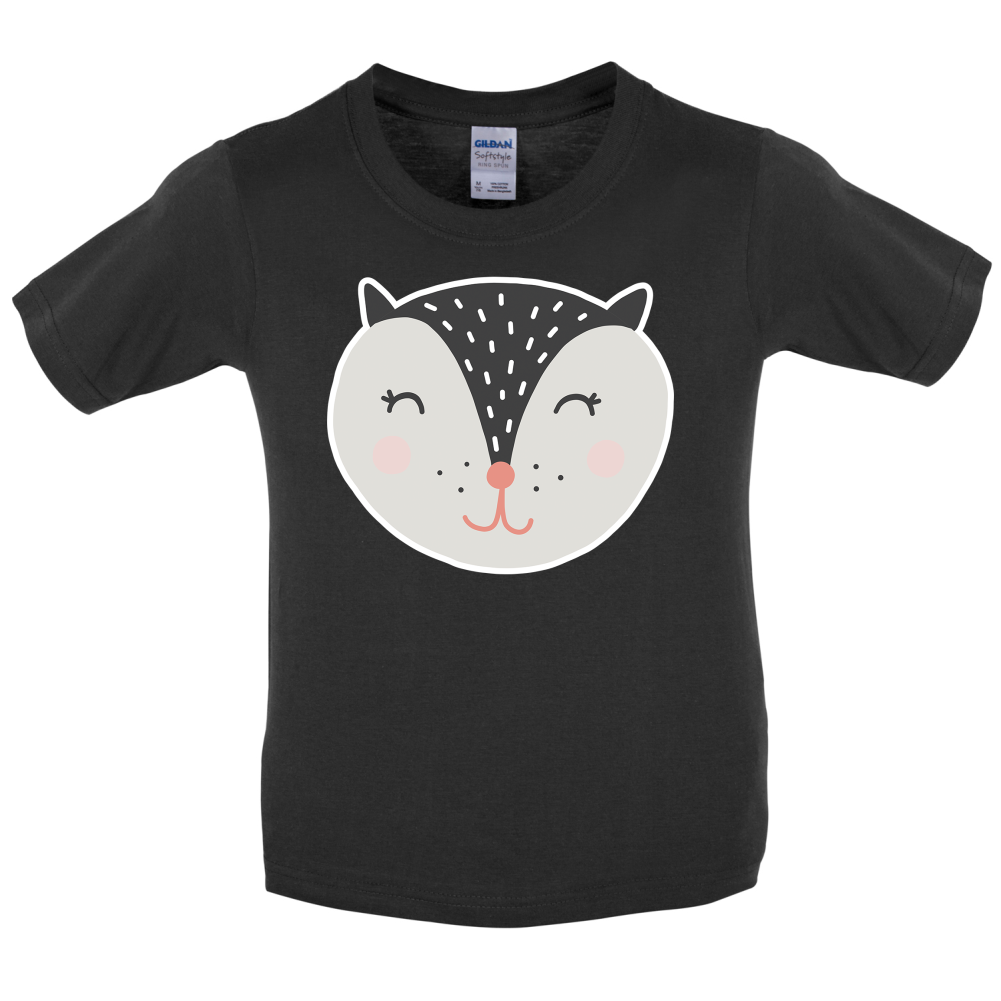 Kids T-shirt: Our Kid's Unisex style Smiley Face Badger T-shirt is printed on our 150 GSM ringspun cotton garment and is available on 8 different colours.