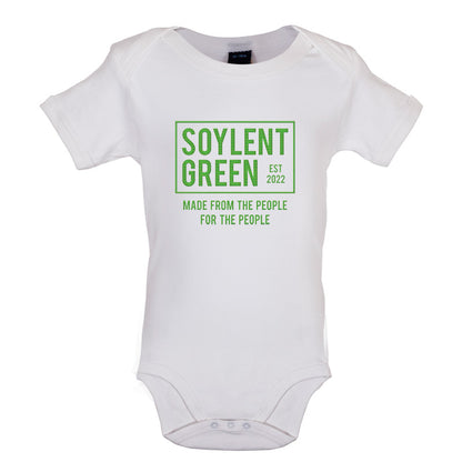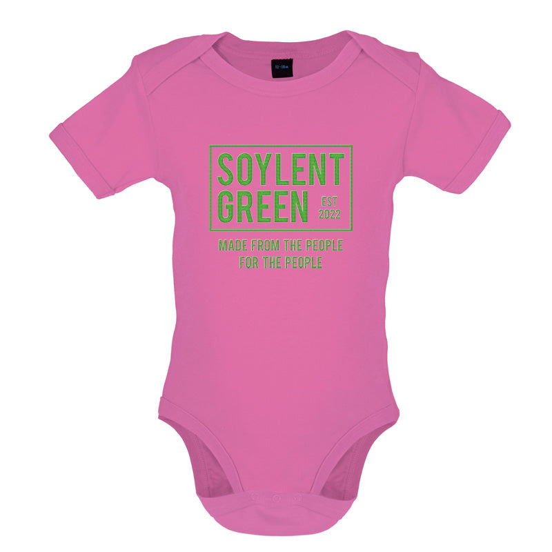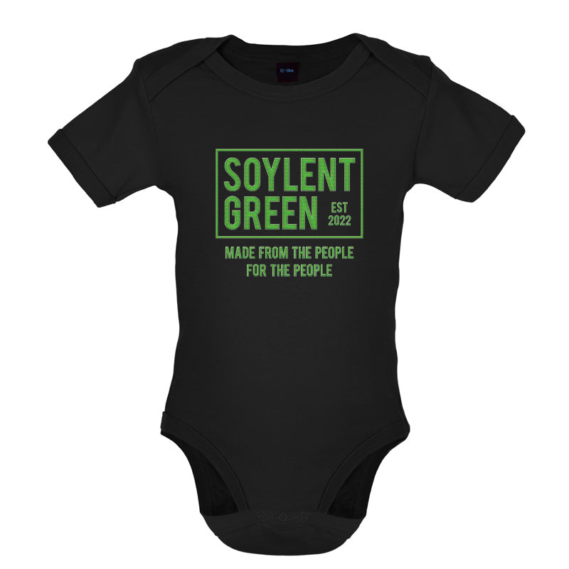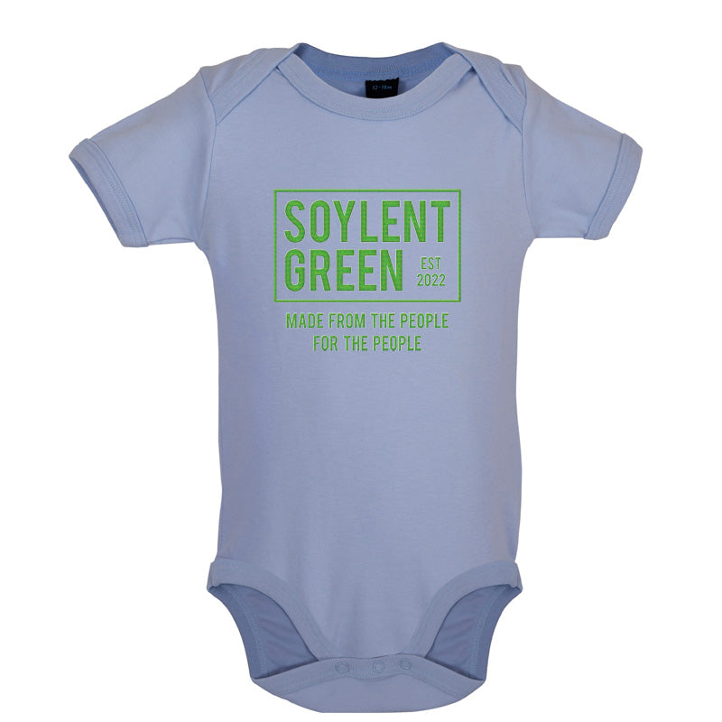 Babygrow/Bodysuit: Our Baby unisex style Soylent Green Est 2022 Babygrow is printed on our 200 GSM short sleeve bodysuit and is available in a choice of 6 different Colours.