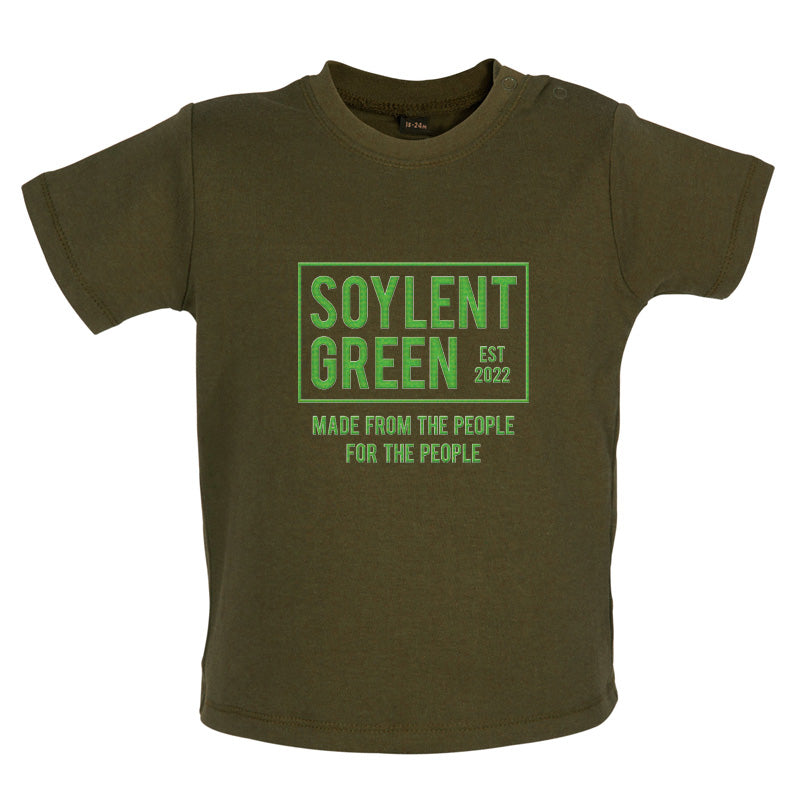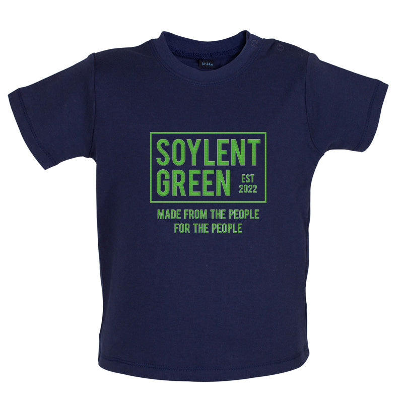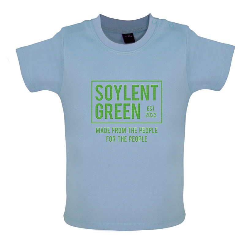 Baby/Toddler T-shirt: Our Baby Unisex style Soylent Green Est 2022 T-shirt is printed on our high quality 200 gsm ringspun cotton garment which features shoulder poppers to ease getting your little one dressed. Our Baby T-shirts are available in a choice of Eight colours.