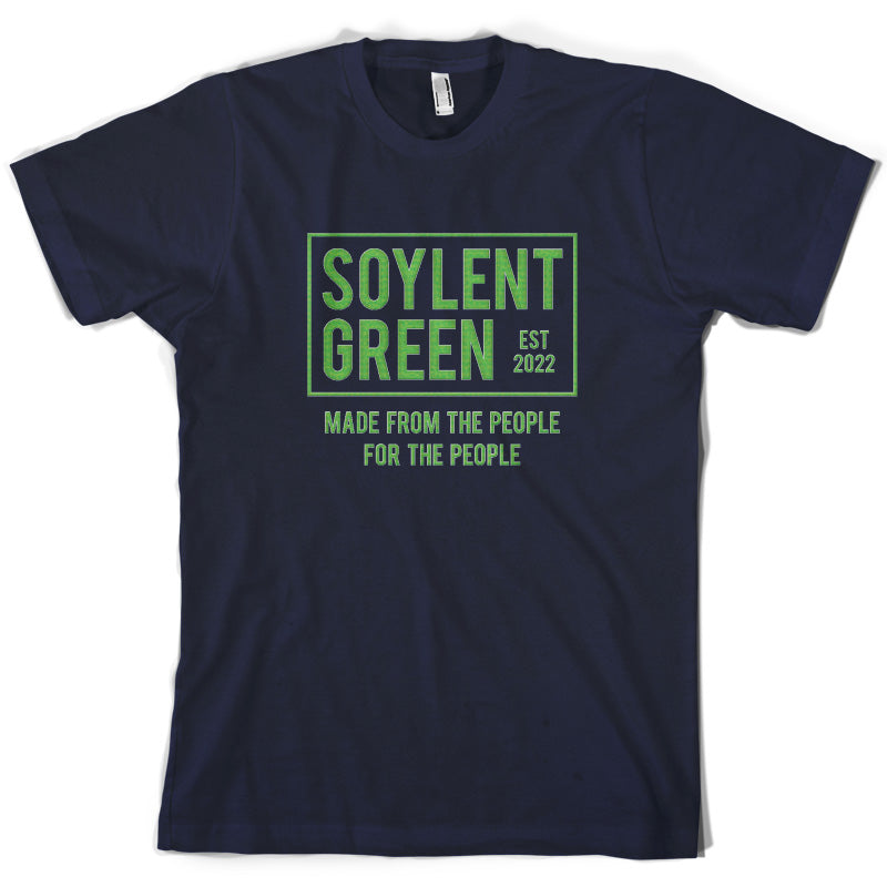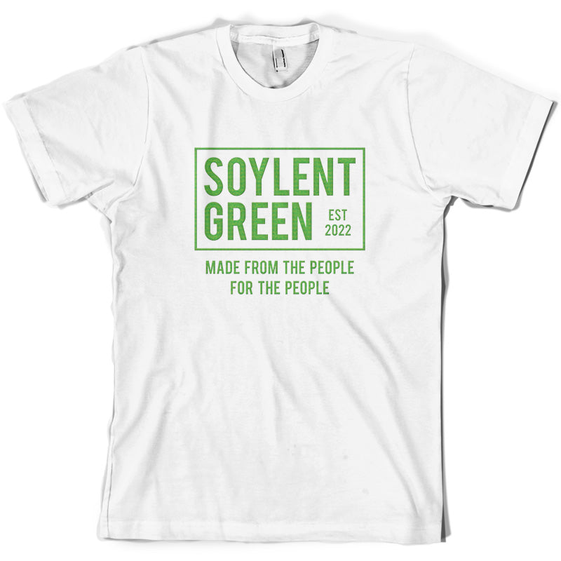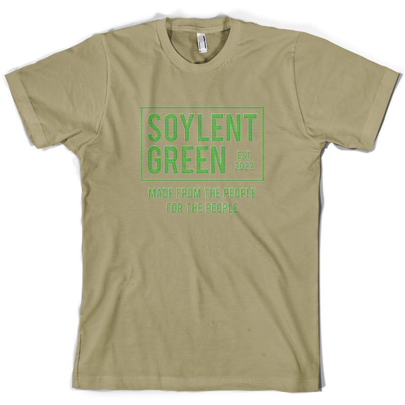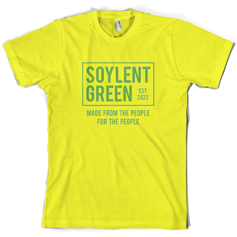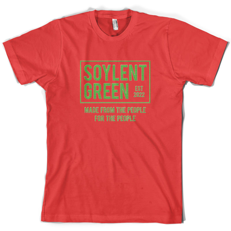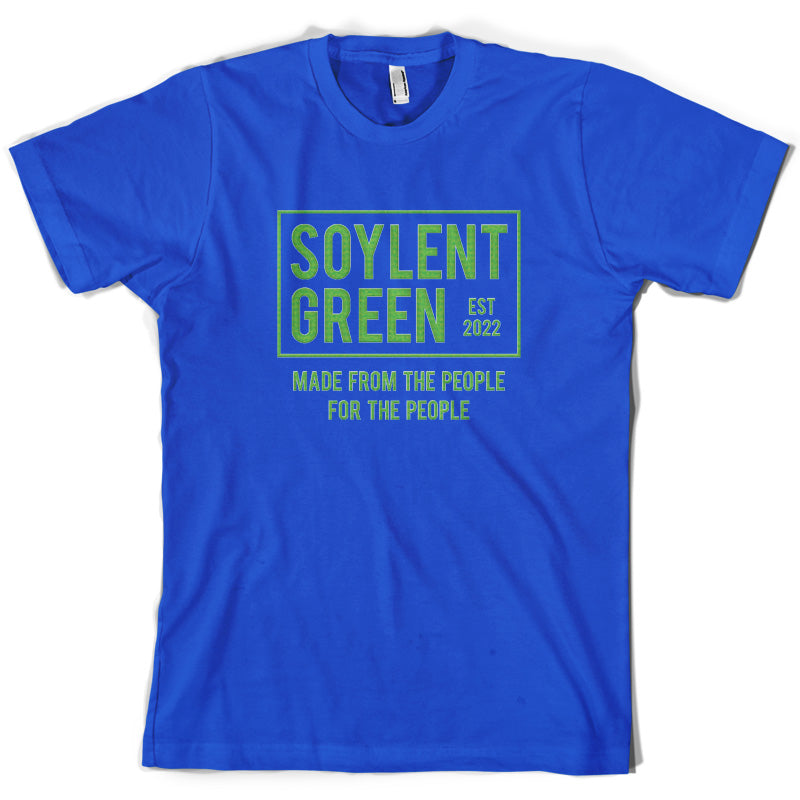 Mens Unisex T-Shirt, our men's Soylent Green Est 2022 t shirt is printed onto our premium 190 GSM one piece crew neck t-shirt. Available in 10 Colours and from Size Small to XXL.