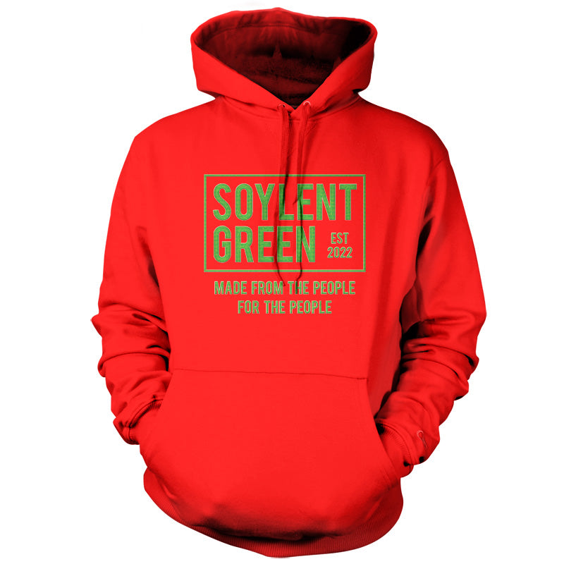 Unisex Hoodie, Our unisex style Soylent Green Est 2022 Hooded top is printed on our 280 GSM kangaroo pocket garment and is Available in 9 Colours and with sizes Small to XXL.